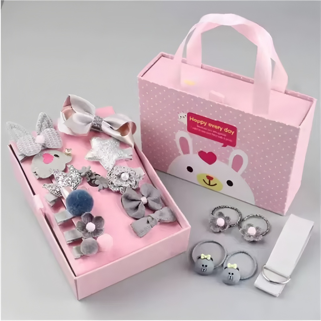 Ikat Rambut Anak18PCS Set Gift Box Jepit Rambut Wanita - Kado Ulang Tahun - Bisa &