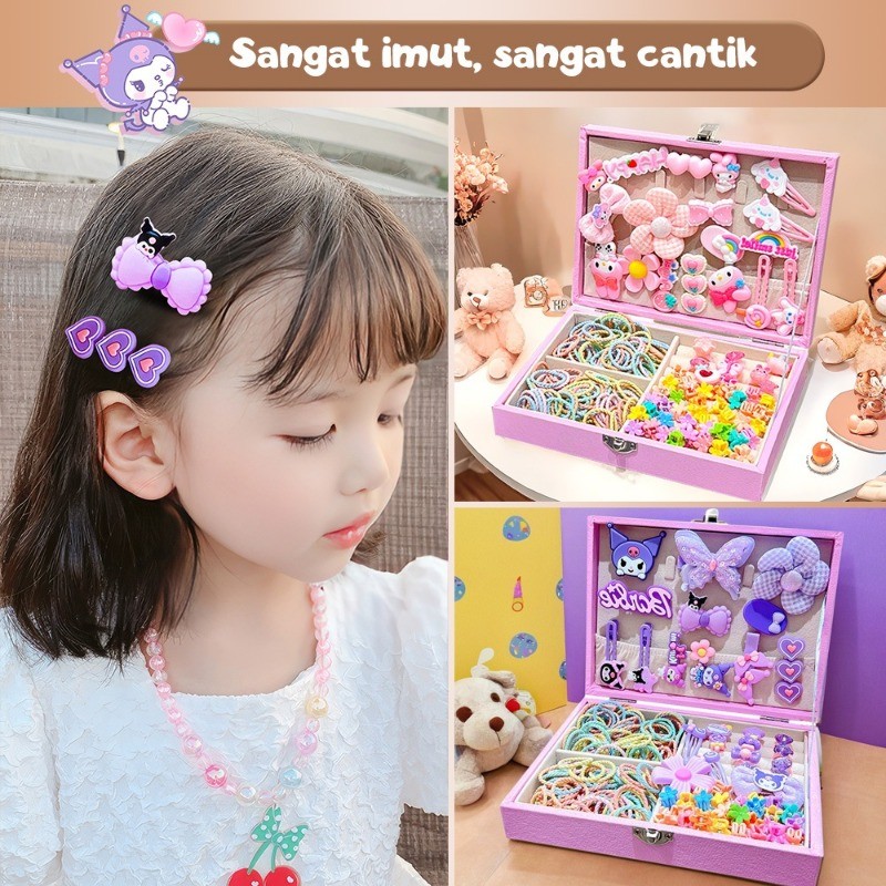 [Gratis Kotak Hadiah] 158pcs Set Melody Ikat Rambut Jepitan Mix Pastel Aksesoris Rambut Anak Perempuan Kuncir Jepit Warna Warni Box Gift