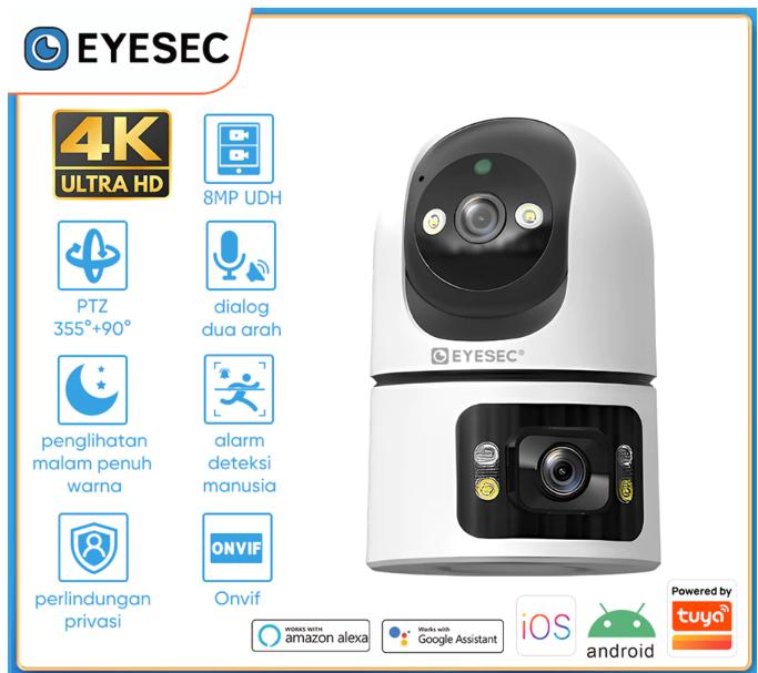 EYESEC CCTV 2 Kamera 8MP UHD Smart Indoor CCTV WiFi Dual Lens IP Camera 355° PTZ Garansi 1 Tahun - CCTV ONLY