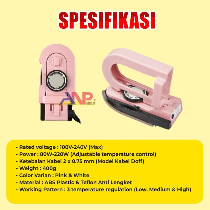 ANP88 Setrika Lipat Mini Portable Peralatan Rumah Tangga / Mini Travel Dry Iron Detachable Handle / Setrika Mini Traveli