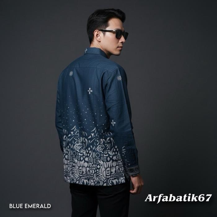 MALAYU BLUE EMERALD Kemeja batik pria lengan panjang katun prima premium lapis furing hero