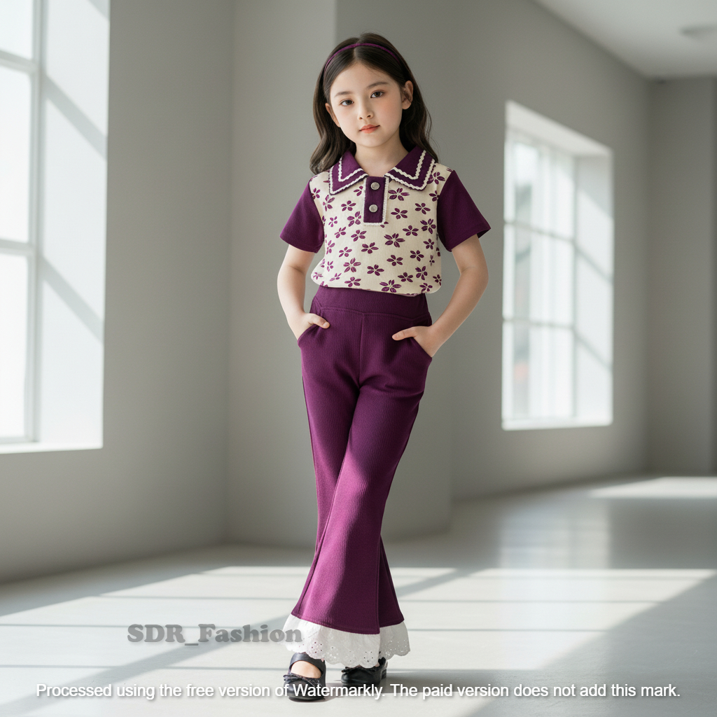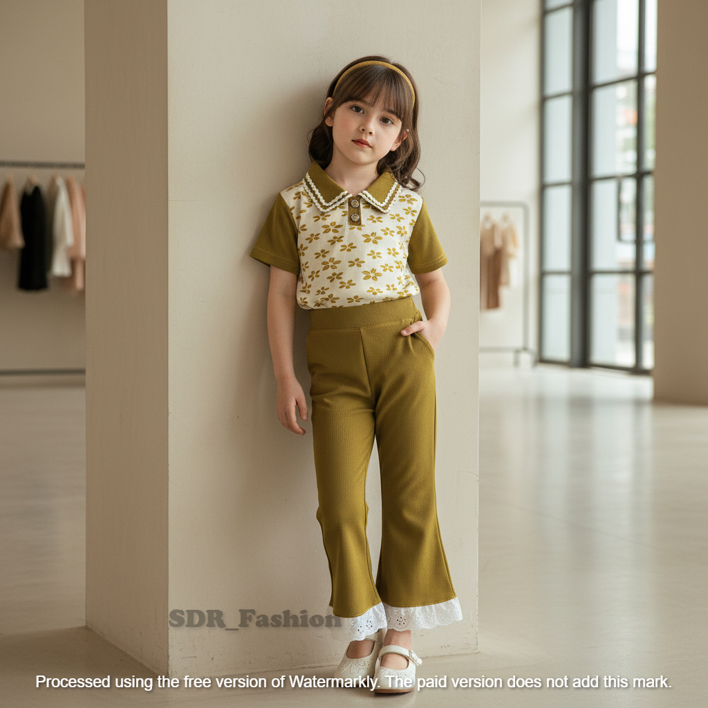 One set anak kekinian motif bunga bahan japan linen untuk usia 1 sampai 10 tahun Parsel