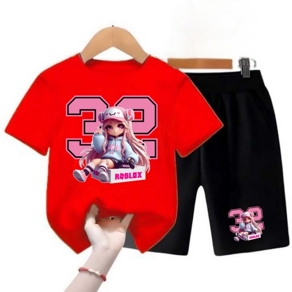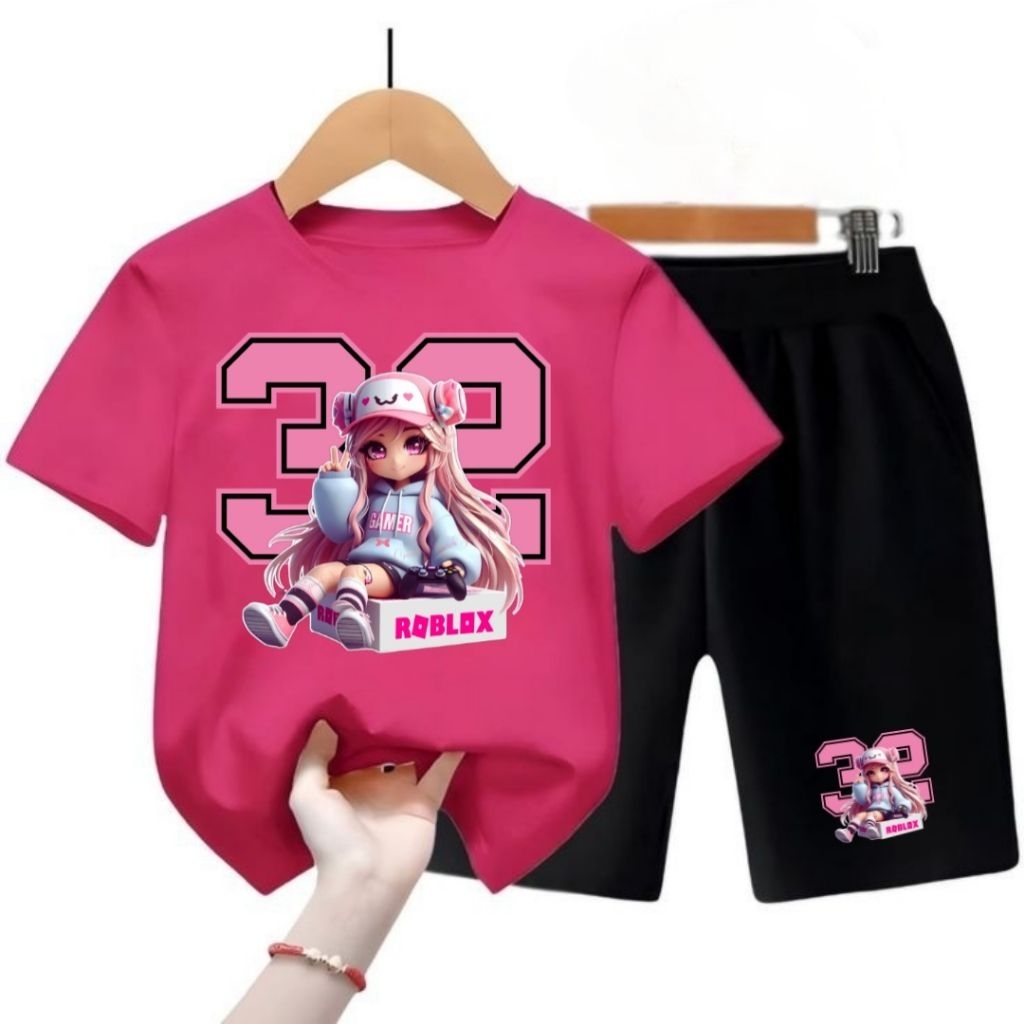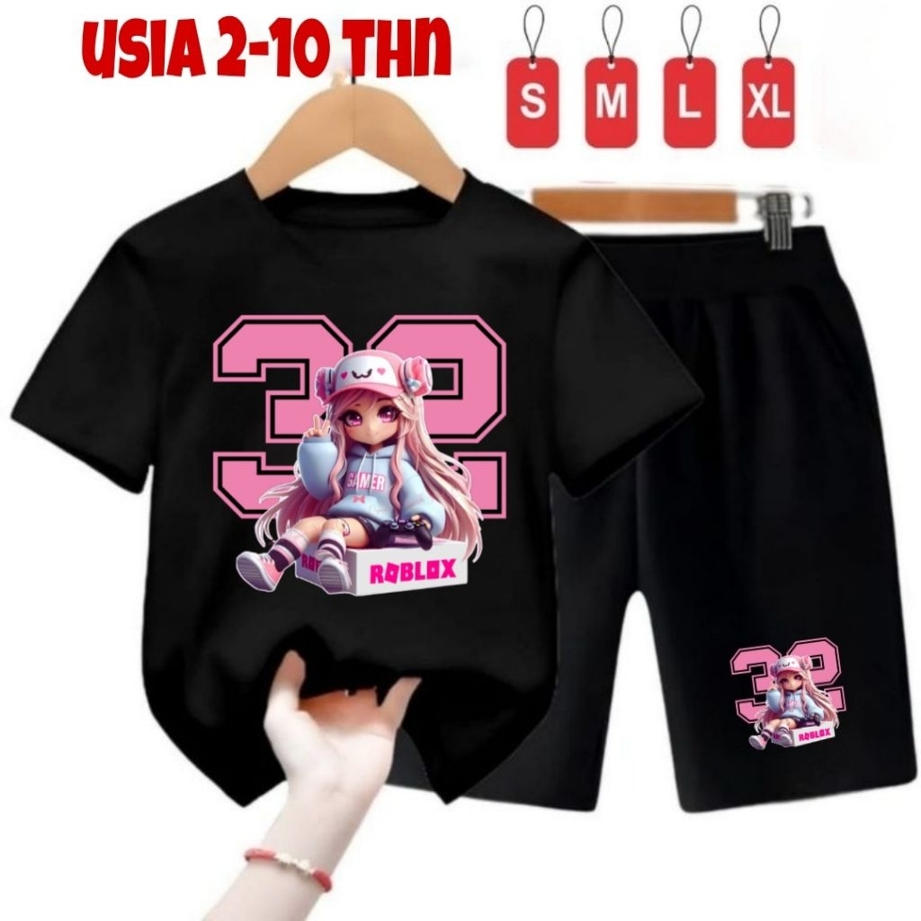 SETELAN KAOS ANAK PREMPUAN//CEWE .GAMBAR SABLON ROBLOX32.