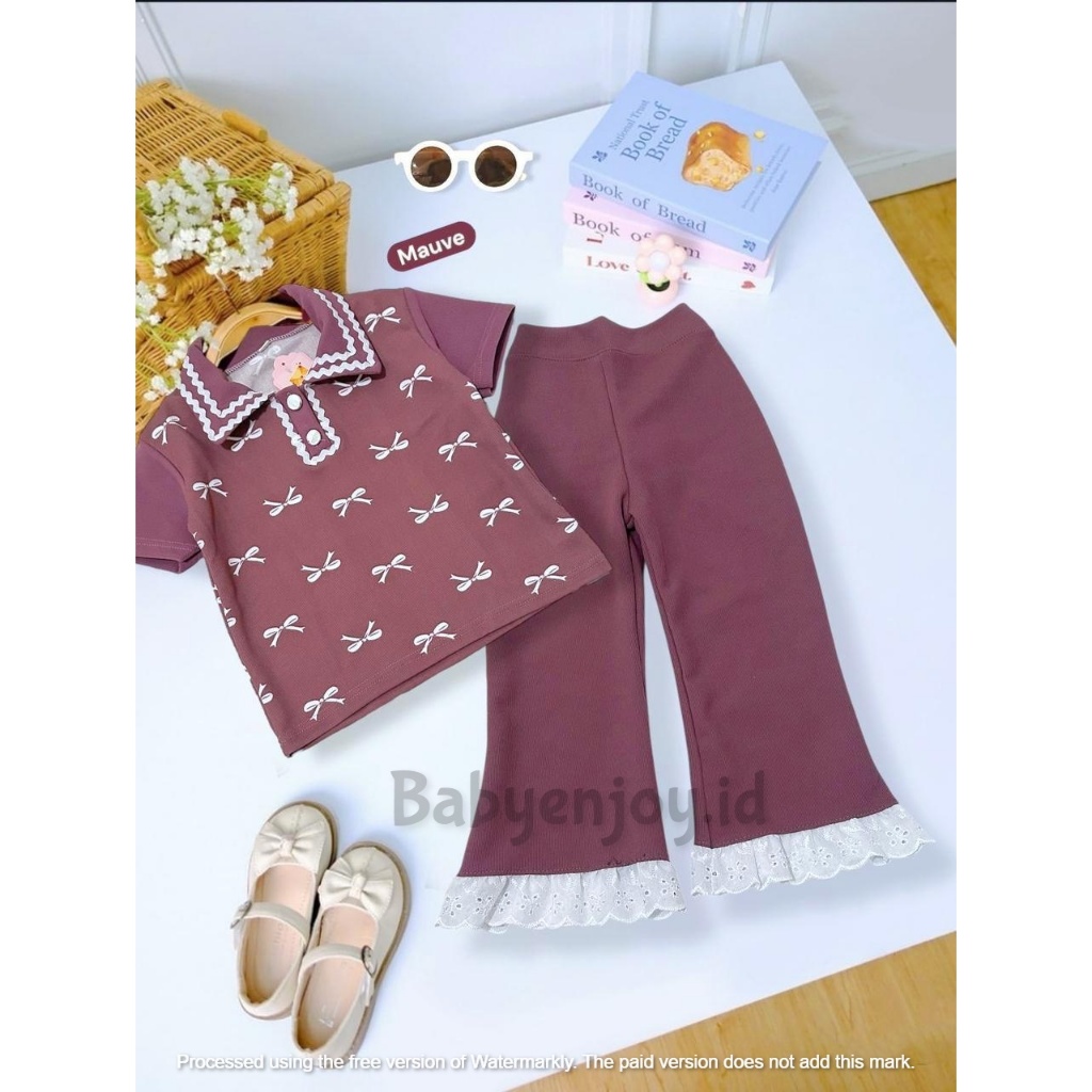 one set anak perempuan anak motif pita ada banyak varian warna ready 1-10 tahun