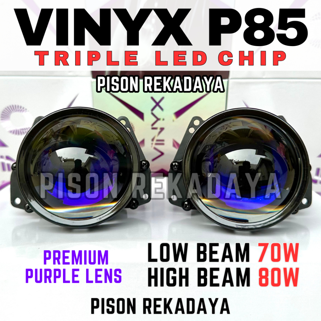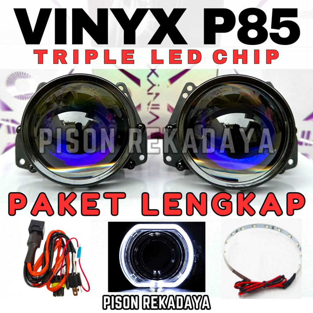 Paket Lengkap Projector Biled P85 Triple Led Proji Vinyx P85 3 Inch Lampu Motor Mobil Projie 68W/78W