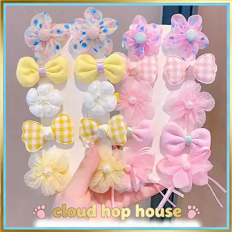 Jepit Rambut Set 10 in 1 - Jepitan Rambut Anak Motif Bunga Pita, Perhiasan Rambut Cantik D189