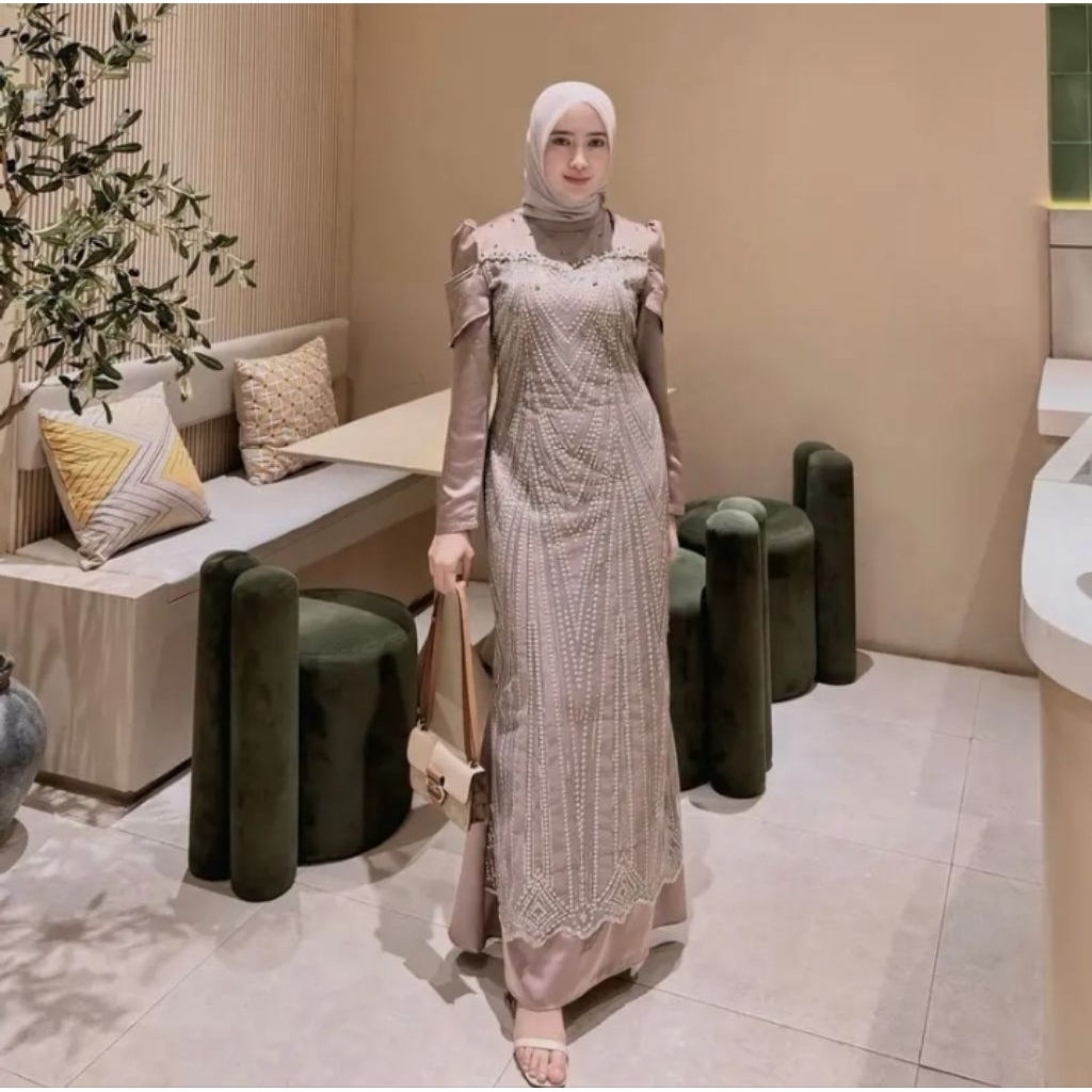 Gamis Pesta Kondangan Wanita Terbaru 2025 Leora Dress Gaun Bridesmaid Mewah Bahan Velvet Mix Brukat