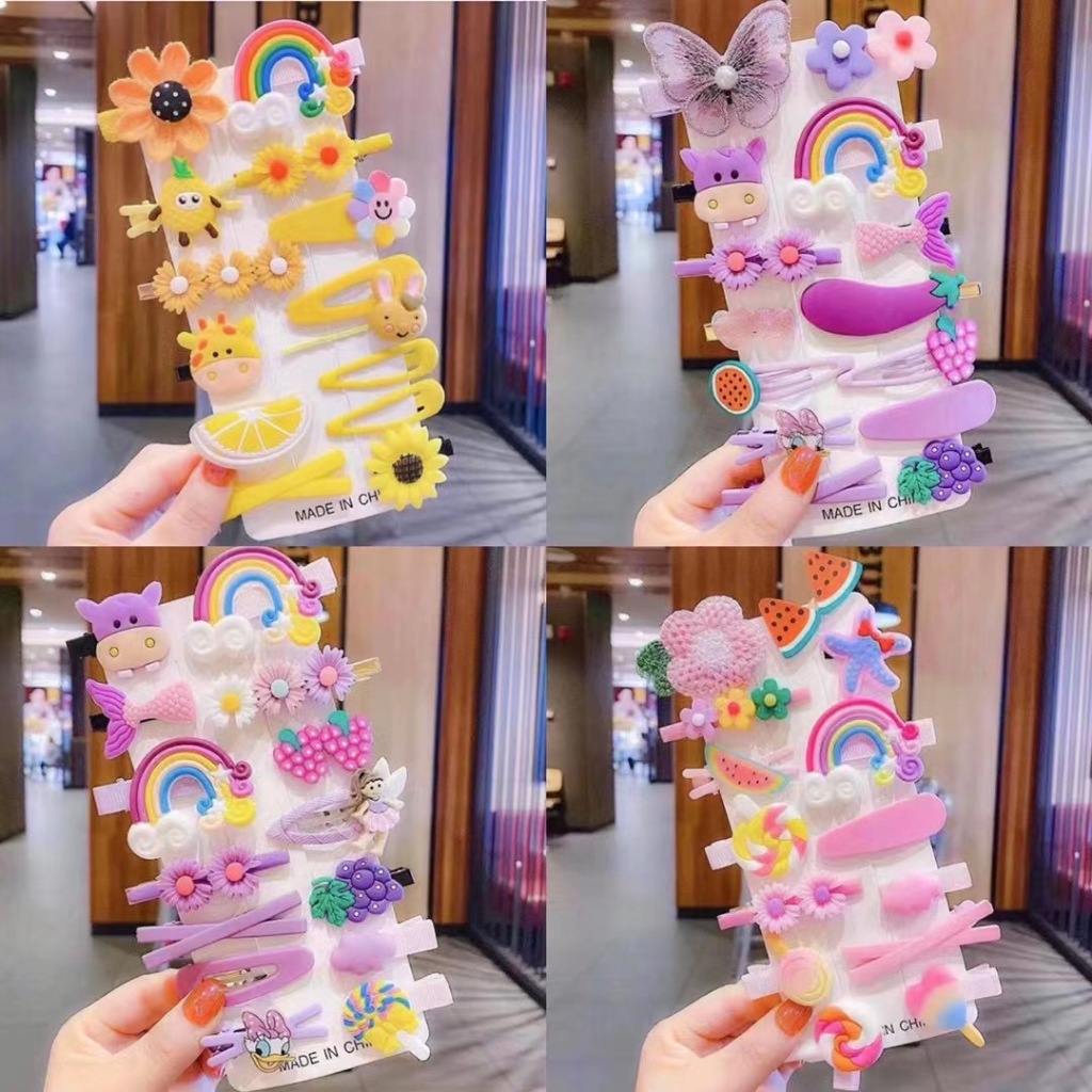 Jepit Rambut Anak Set Termurah -Jepitan Rambut Anak Motif Karakter Kartun Hairpin Fashion Korea Set 14 Jepit Rambut
