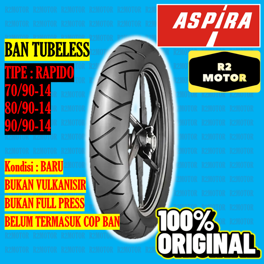 ASPIRA BAN LUAR TUBELESS 70/90 80/90 90/90 RING 14 RAPIDO BEAT VARIO SCOOPY MIO ORIGINAL BARU