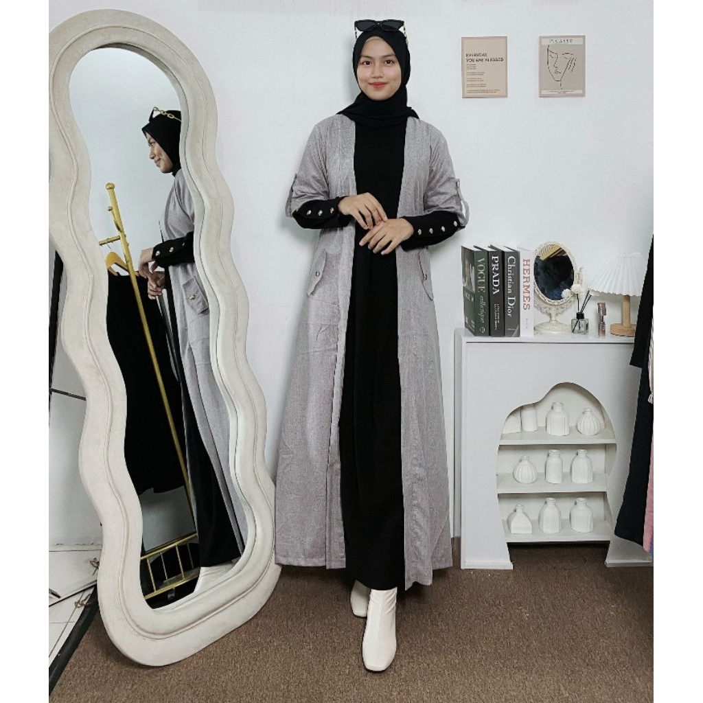 Dress Muslim Wanita Terbaru Kekinian Gamis Model Abaya Sabiyan Bahan Kombinasi Knit Premium mix Katun Lembut Daily Casual