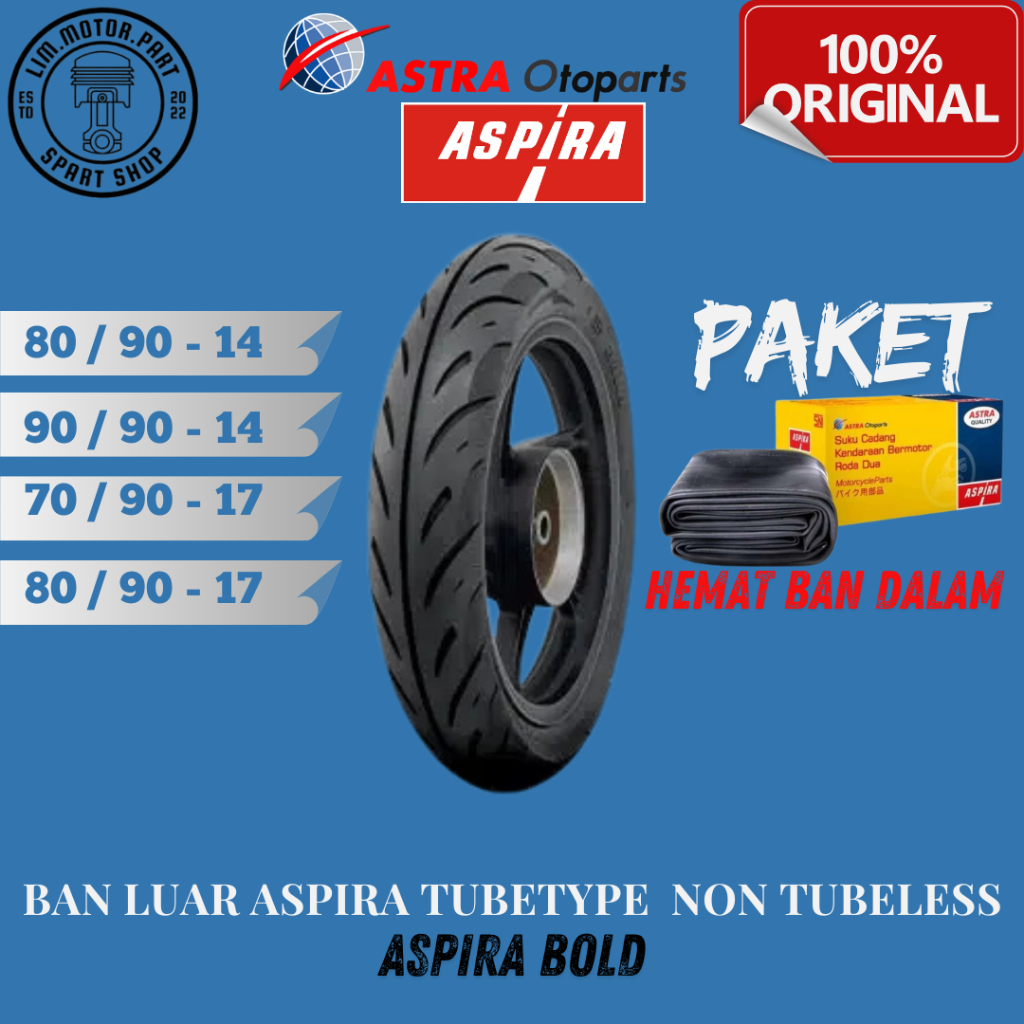 BAN ASPIRA BOLD TUBETYPE (NON TUBELESS) BAN LUAR BOLD RING 14 RING 17 (80/90-14 | 90/90-14 | 70/90-17 | 80/90-17)