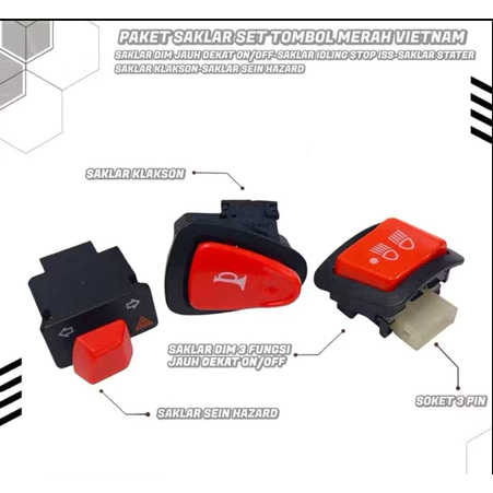 PAKET SAKlAR TOMBOL SAKlAR VETNAM MERAH DIMMER STARTER KLAKSON ENGINE SEN UNIVERSAL VARIO 125 SPACY REVO BEAT SCOOPY FI