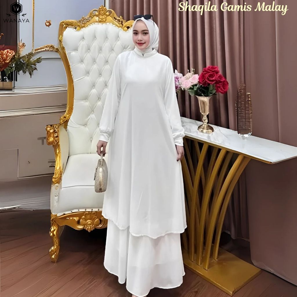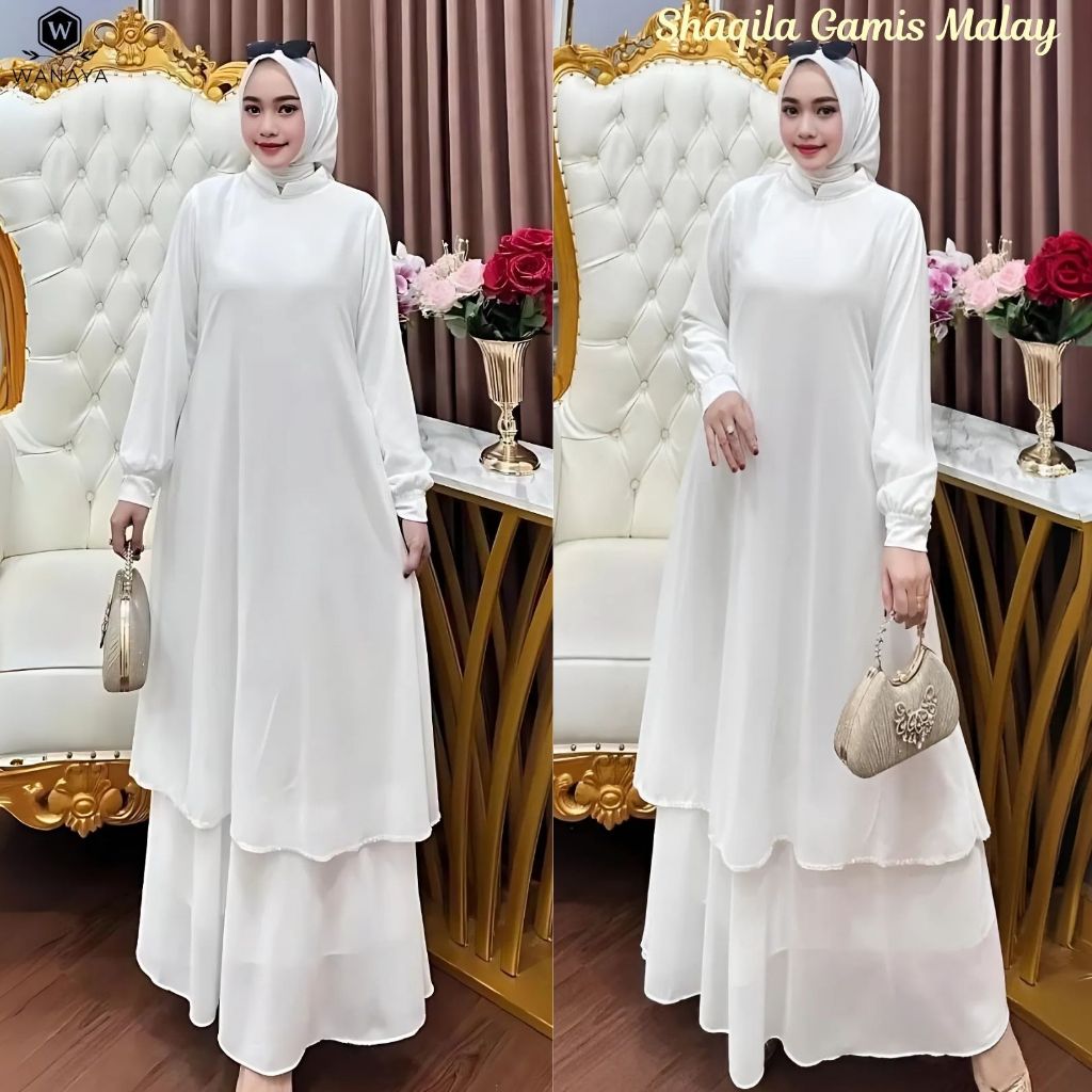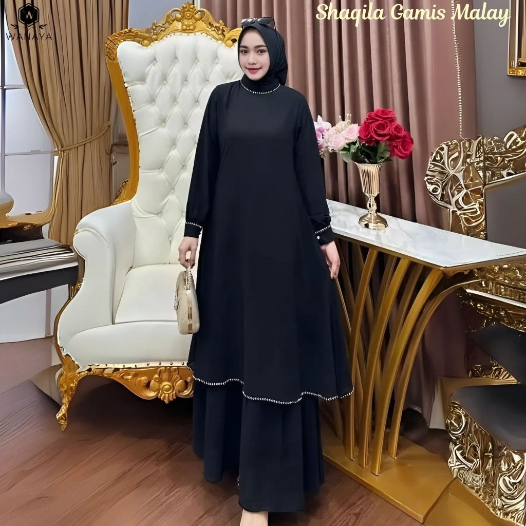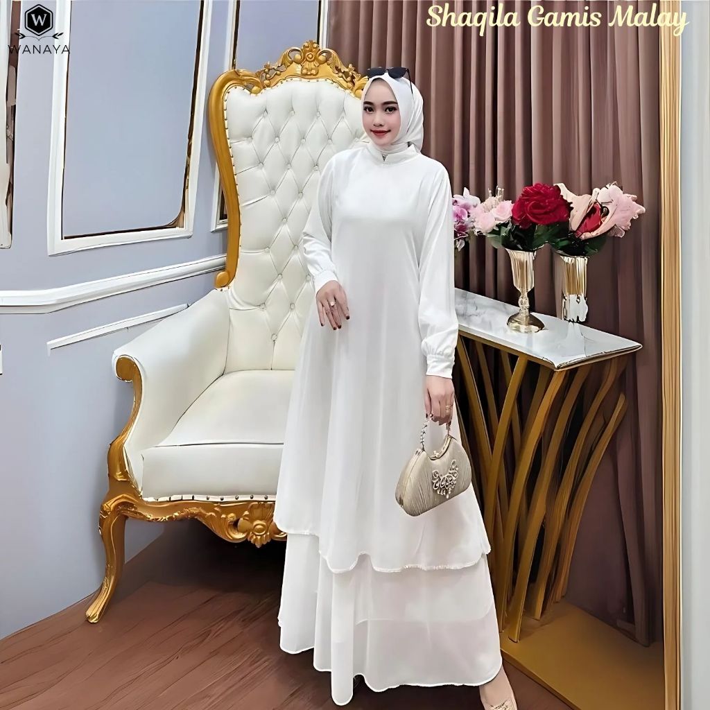 Shaqila Gamis Malay Premium Wanita Muslim Ceruty Babydoll Lengan Panjang Hitam Putih Segala Acara