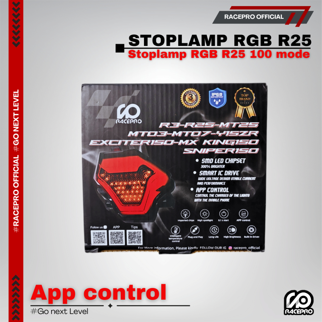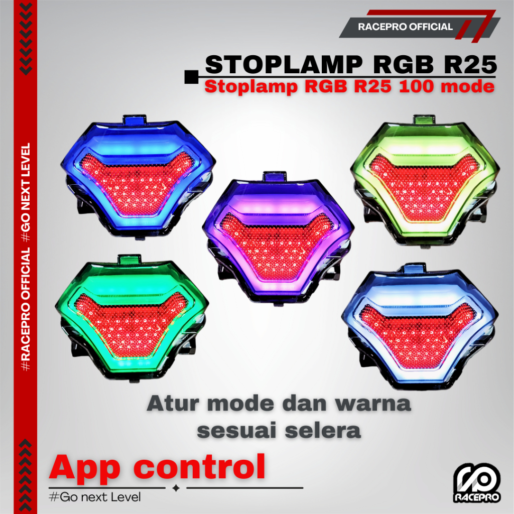 STOPLAMP R25 RACEPRO RGB CONTROL E APLIKASI LAMPU BELAKANG R25/MX KING/MT25/DLL