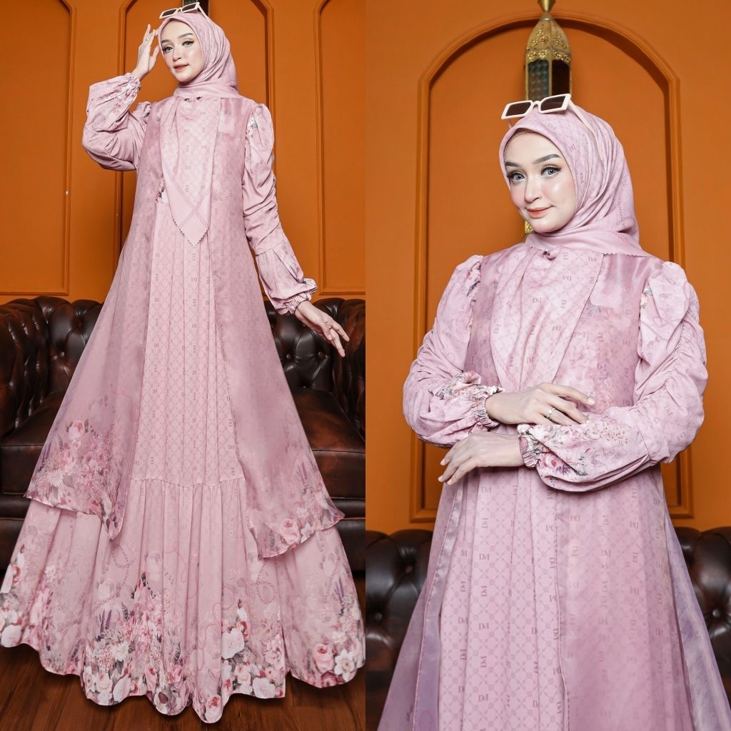 LAILA SERIES BY D'MECCA SYARI GAMIS CERUTY PREMIUM OUTER CARDI ORGANZA PRINTING SET JILBAB SCARF VOAL