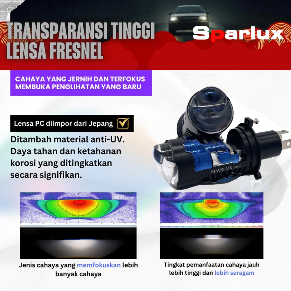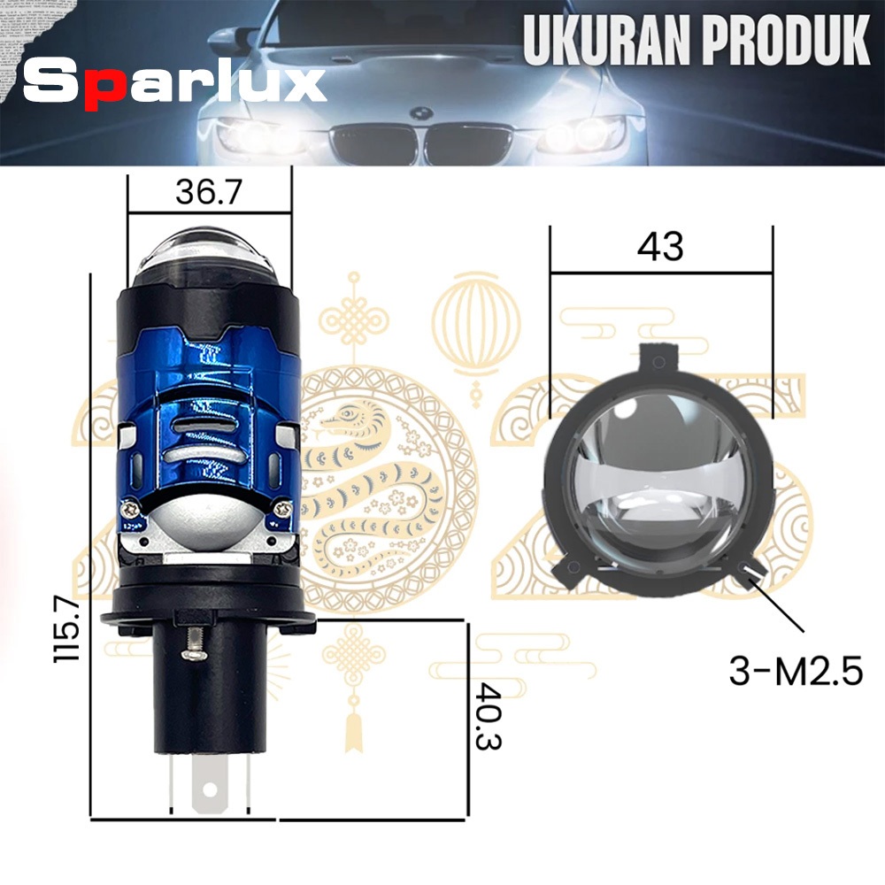Sparlux Lampu Flat Projector BILED H4 M101 Cahaya Terang Berkualitas Cocok untuk Mobil Motor