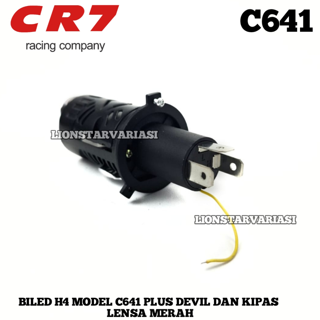 CR7 C641 - Lampu Utama LED H4 Biled Projector Lensa Merah/Red Lens Plus Devil dan Kipas Motor Mobil