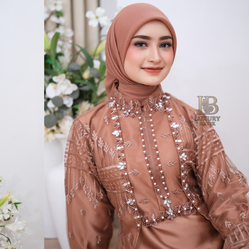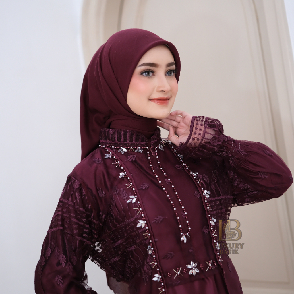 Dress ANISA Luxury Set Gamis Inner+Outer Baju Lebaran 2026 Gaun Elegan Payet Mutiara Bahan Cavali Premium & Tile Sapto