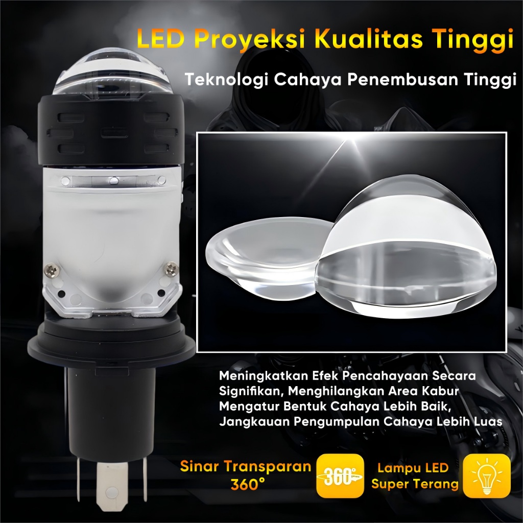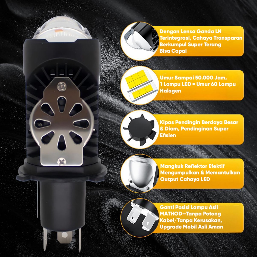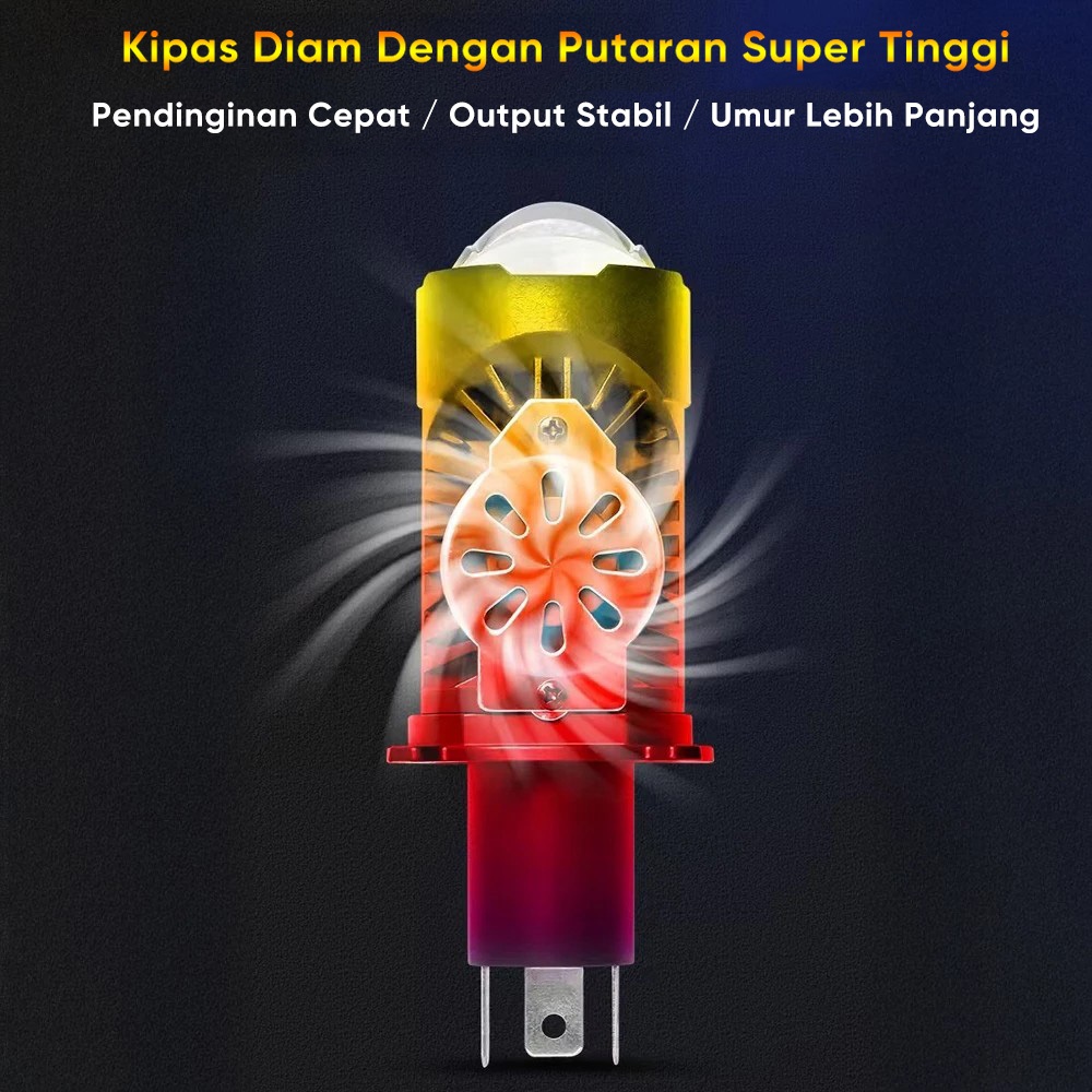 SIROMA Premium Lampu Led Mobil H4 High Low DC / Lampu Utama A6C 50W 3600LM Dengan Devil Eye Plus Kipas Pendingin Full Aluminium Untuk Mobil/Motor