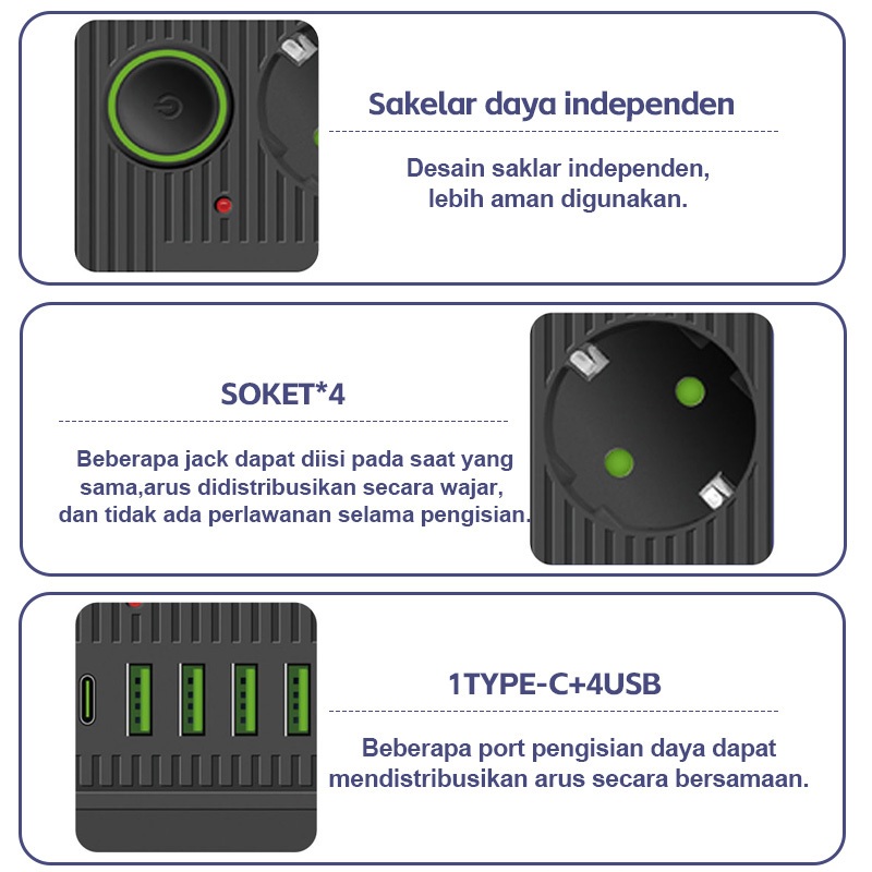 2500W Colokan Listrik Panjang 2/3/5 Meter Stop Kontak Kabel Saklar On Off dengan 3/4/5/6 Lubang Ber-SNI