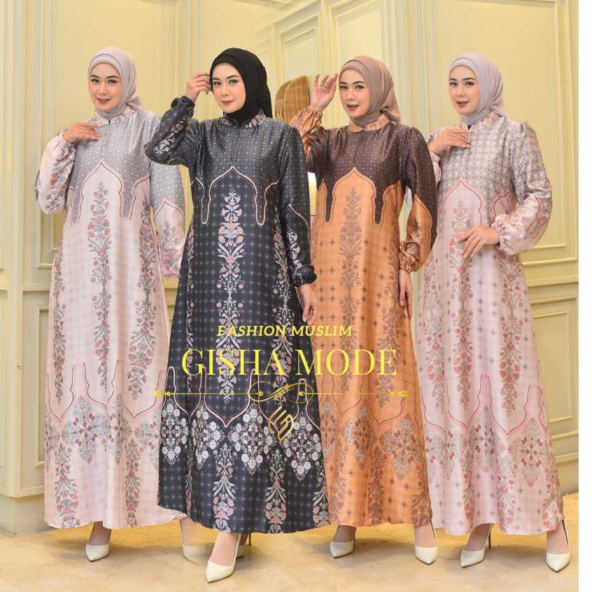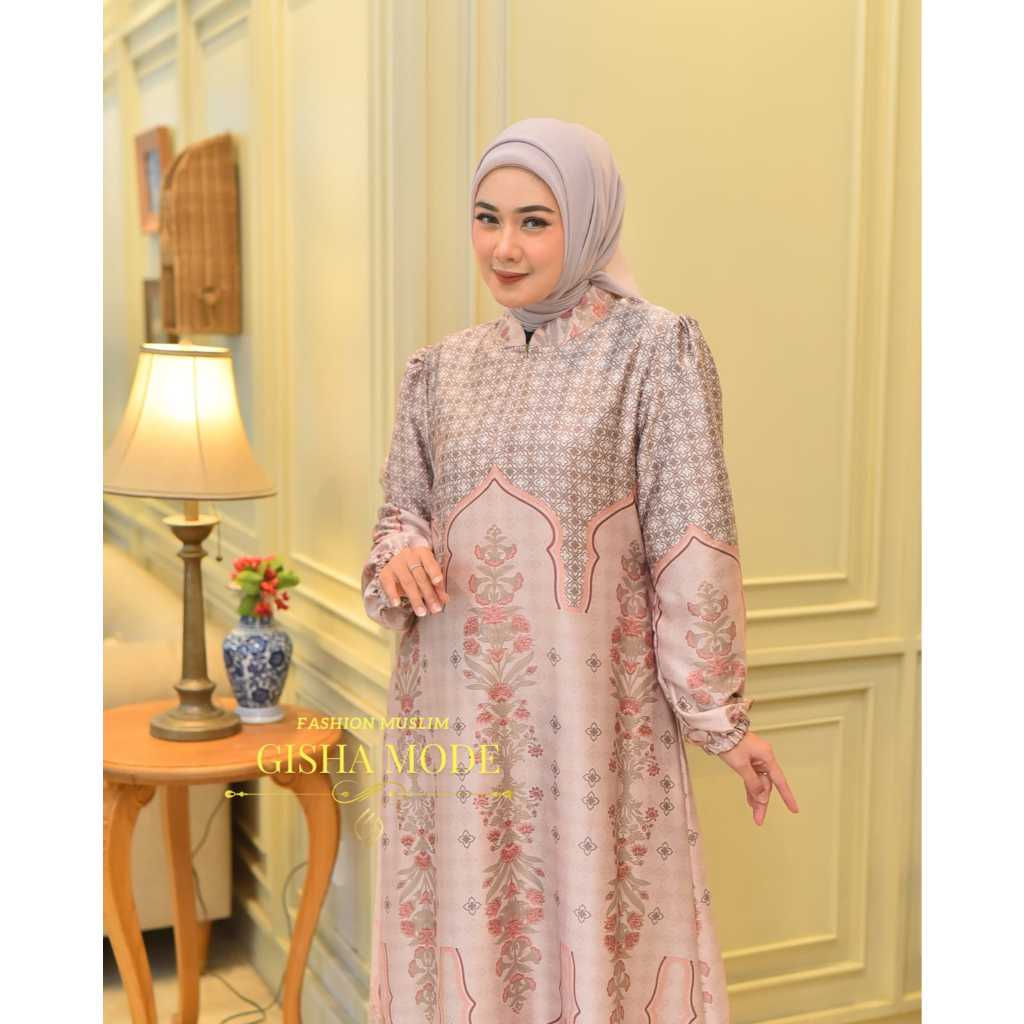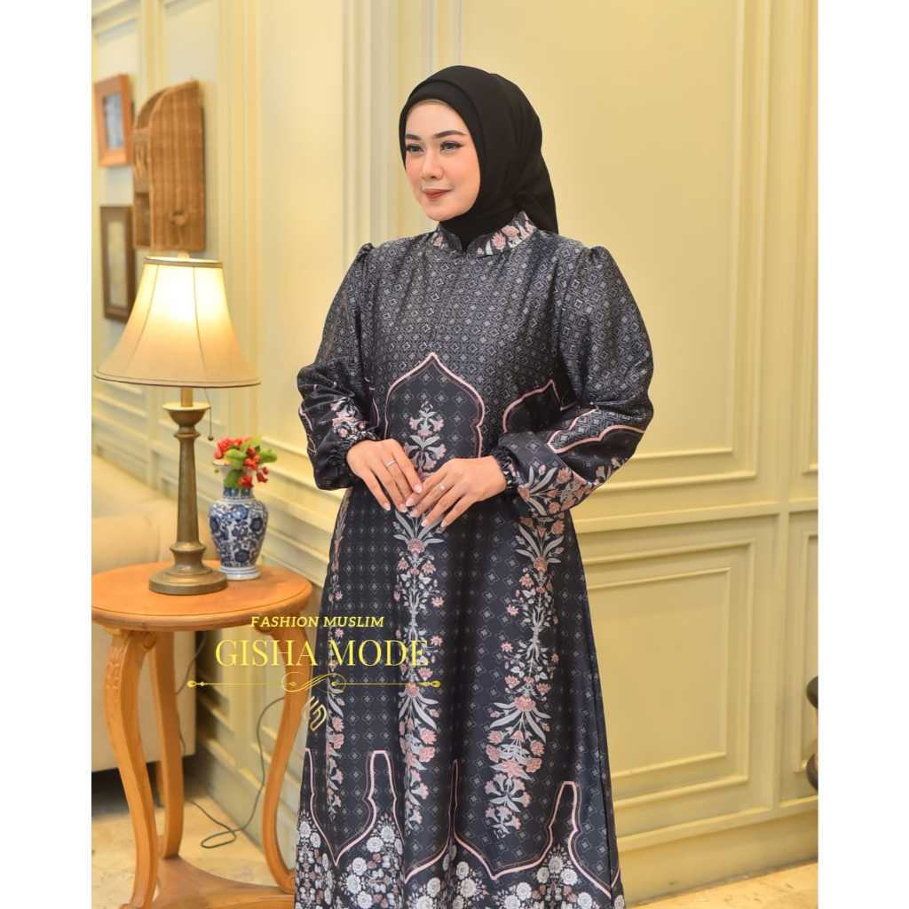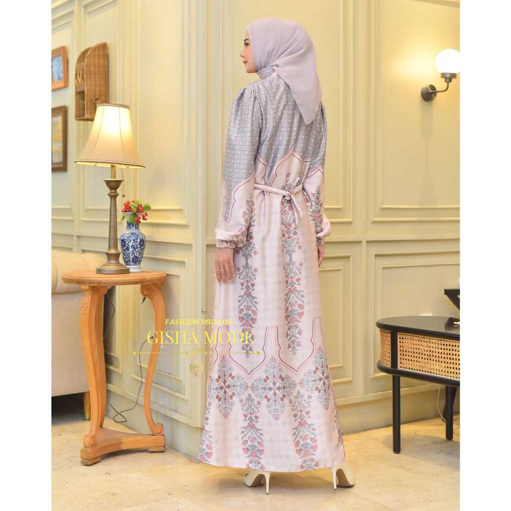 Dress SABRINA Bahan Silk Premium Motif Bunga Elegan | Gamis Muslim Mewah Ukuran Standar Jumbo