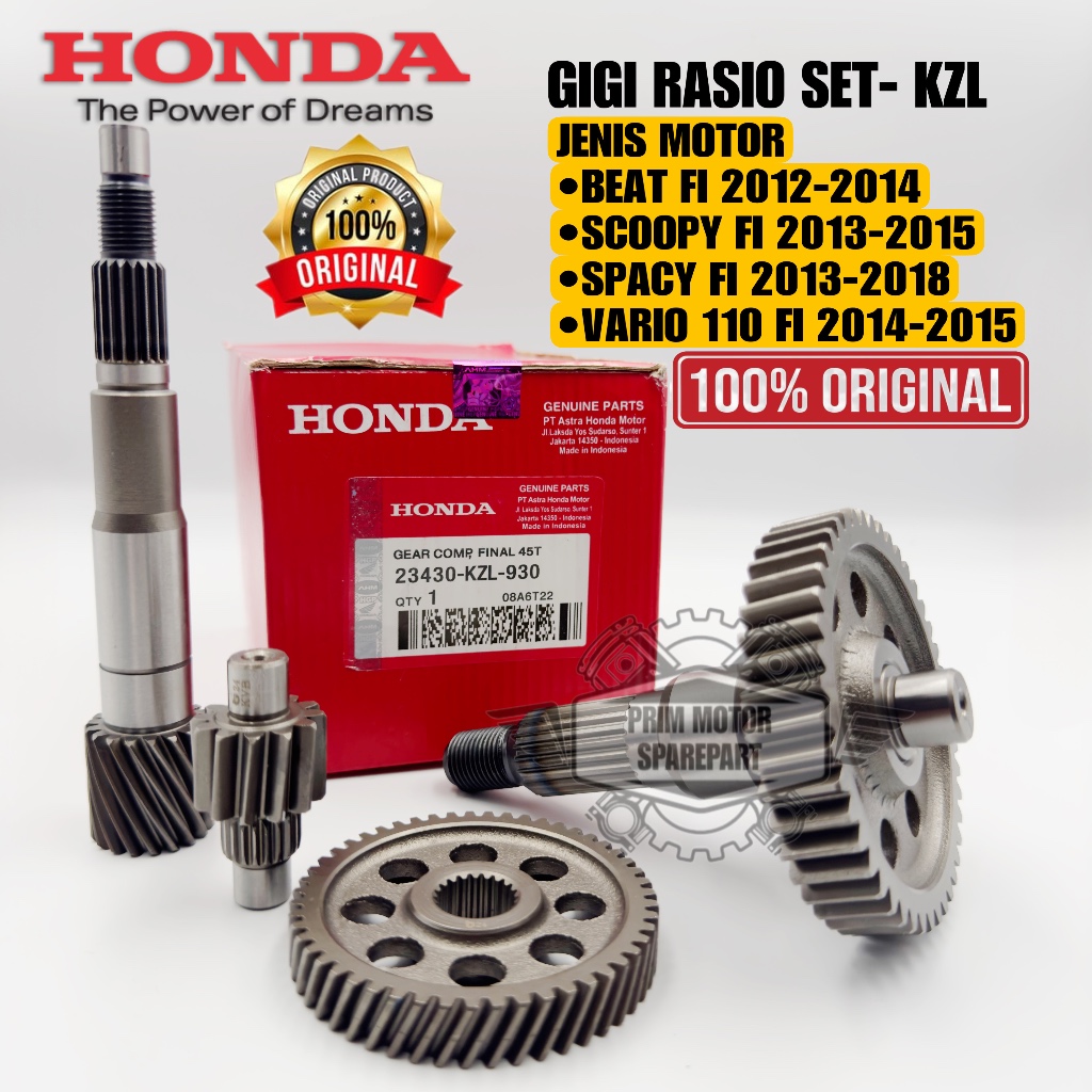 ORIGINAL GIGI RASIO SET KZL HONDA BEAT FI, SCOOPY FI, SPACY FI, VARIO 110 FI KUALITAS ASLI HONDA AHM