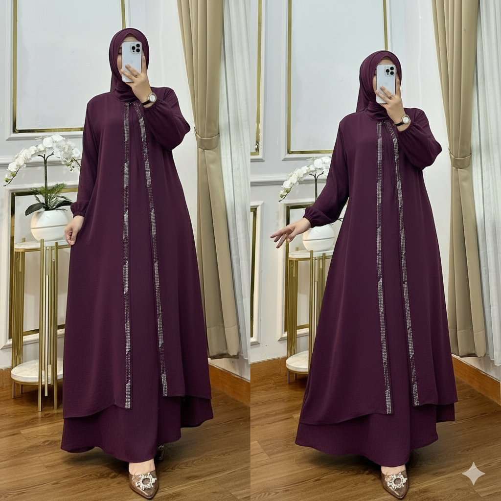 Gamis Abaya Mewah Terbaru Cey Airflow mix Payet Swarovsky