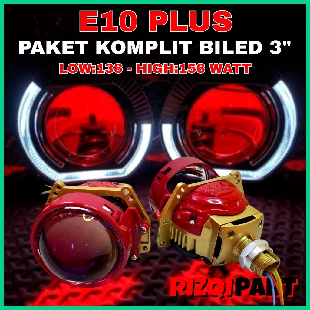 Paket Komplit Hemat Lampu Utama Mobil Dan Motor Vahid Biled E10 Plus | Led Projector 3 Inch Purple Lens Sepasang