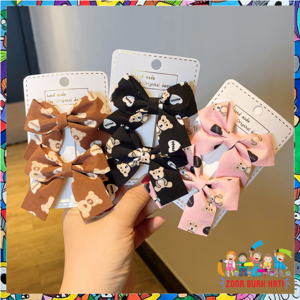 ZBH Jepit Rambut Pita Anak Lucu 2 in 1 Jepitan Rambut Anak Karakter Bear Fashion Jepitan Ribbon Hair Pin Motif Ber Gaya Korea Kids t Murah