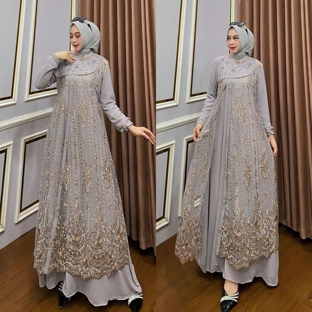 Laura Dress Brukat Kekinian Warna Burgundy Terbaru 2025 Gamis Brokat Mewah Elegan Jumbo S M L XL XXL
