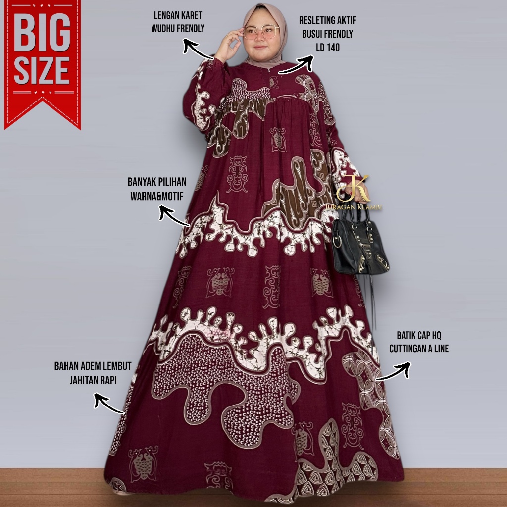 Gamis Home Dress Batik Jumbo LD140 Estimasi BB 80-130kg Adem Lembut Nyaman Free Bros ByJuraganKlambi