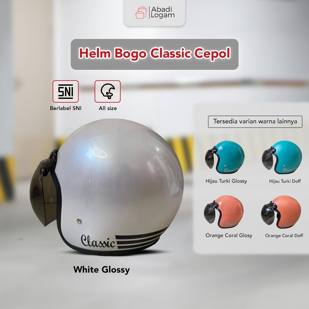 Helm Bogo Dewasa Classic Retro SNI Cepol Hijab Wanita Pria Mixed Color Warna Putih Hijau Coral Glossy Doff Full Leher Mo