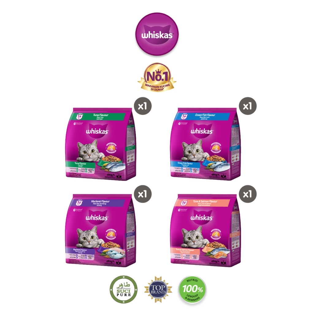 WHISKAS Makanan Kering untuk Kucing Dewasa Pilih Rasa 480gr