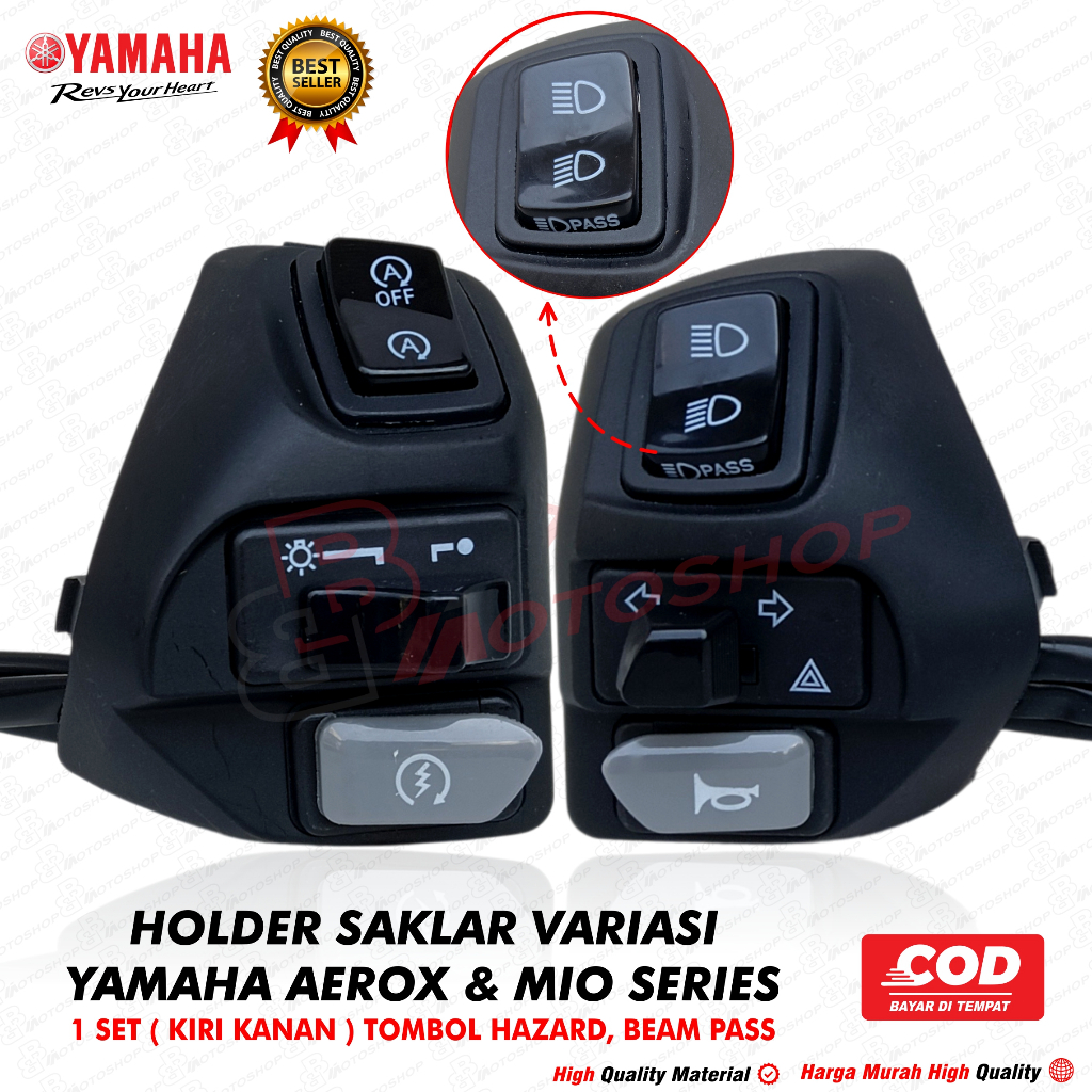 SAKLAR SET KIRI KANAN AEROX 155 TOMBOL BEAM PASS HITAM TOMBOL HAZARD