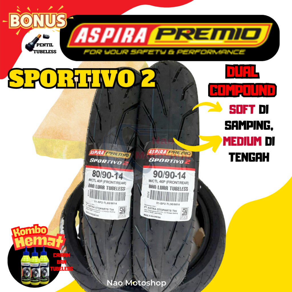 ASPIRA PREMIO SPORTIVO 2 BAN TUBELESS MATIC RING 14 90/90 80/90 90/80 100/80 TUBLES BEAT VARIO FINO