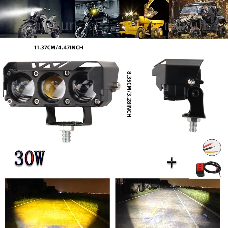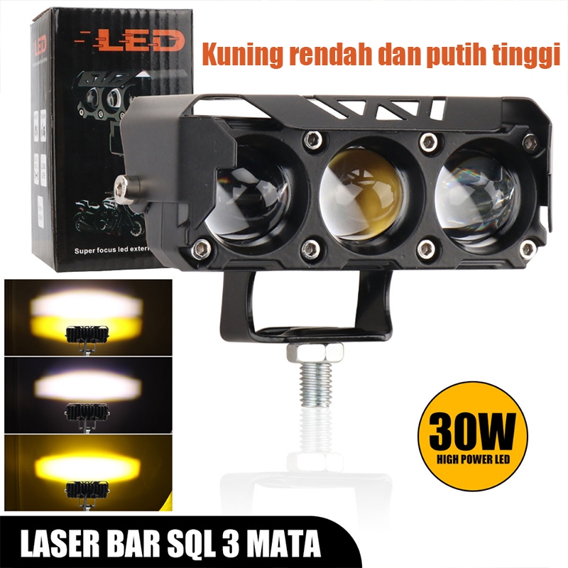 LAMPU TEMBAK LASER FOGLAMP SQL 3 MATA SUPER BRIGHT HI LO 60 WATT LAMPU TEMBAK MOTOR MOBIL- kuning putih