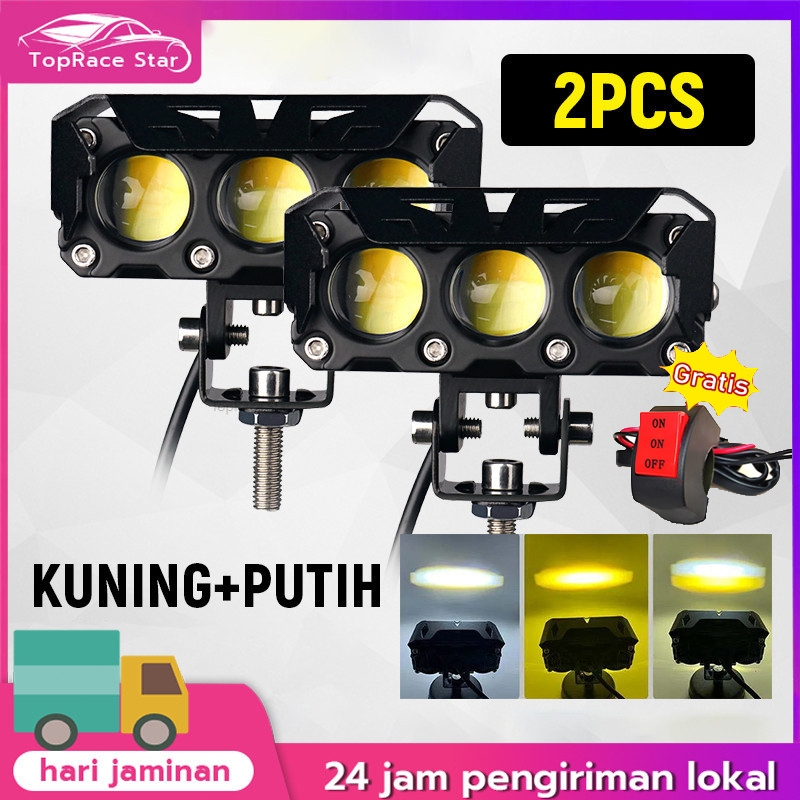 Lampu SQL 3 Mata LED Tembak Laser Foglamp Mobil Motor lampu tembak Laser Gun Putih Kuning 2 Warna Waterproof
