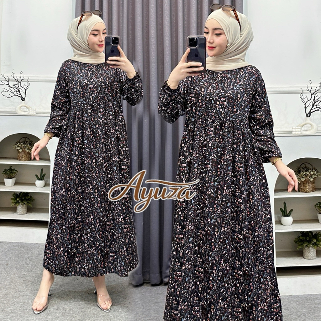 Kalana Midi Dress LD 110 PB 125 Dress Busui friendly mat rayon MOTIF BUNGA