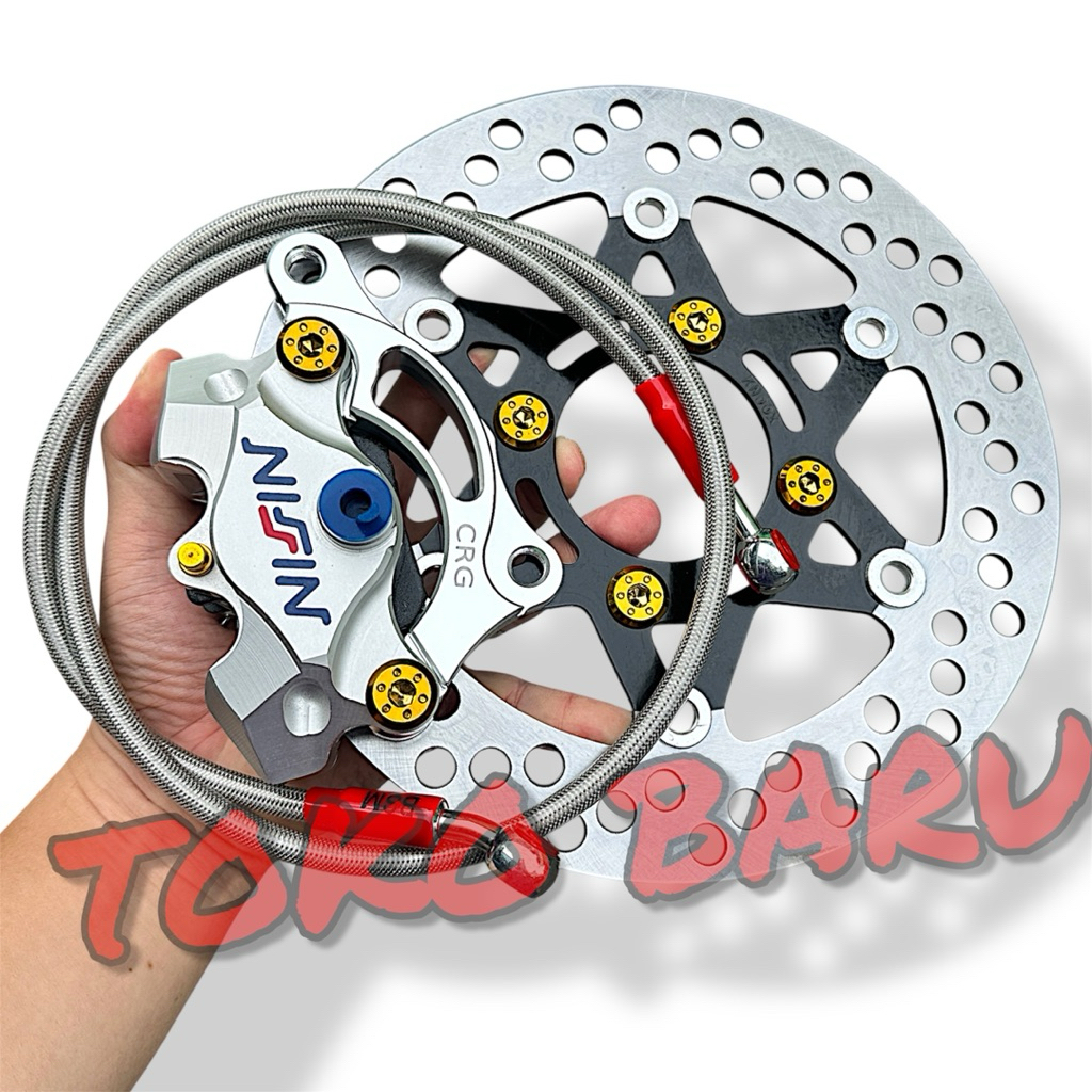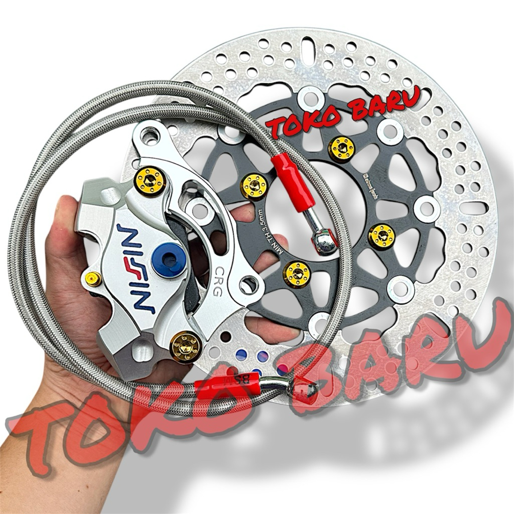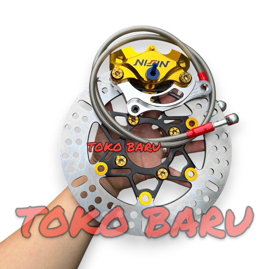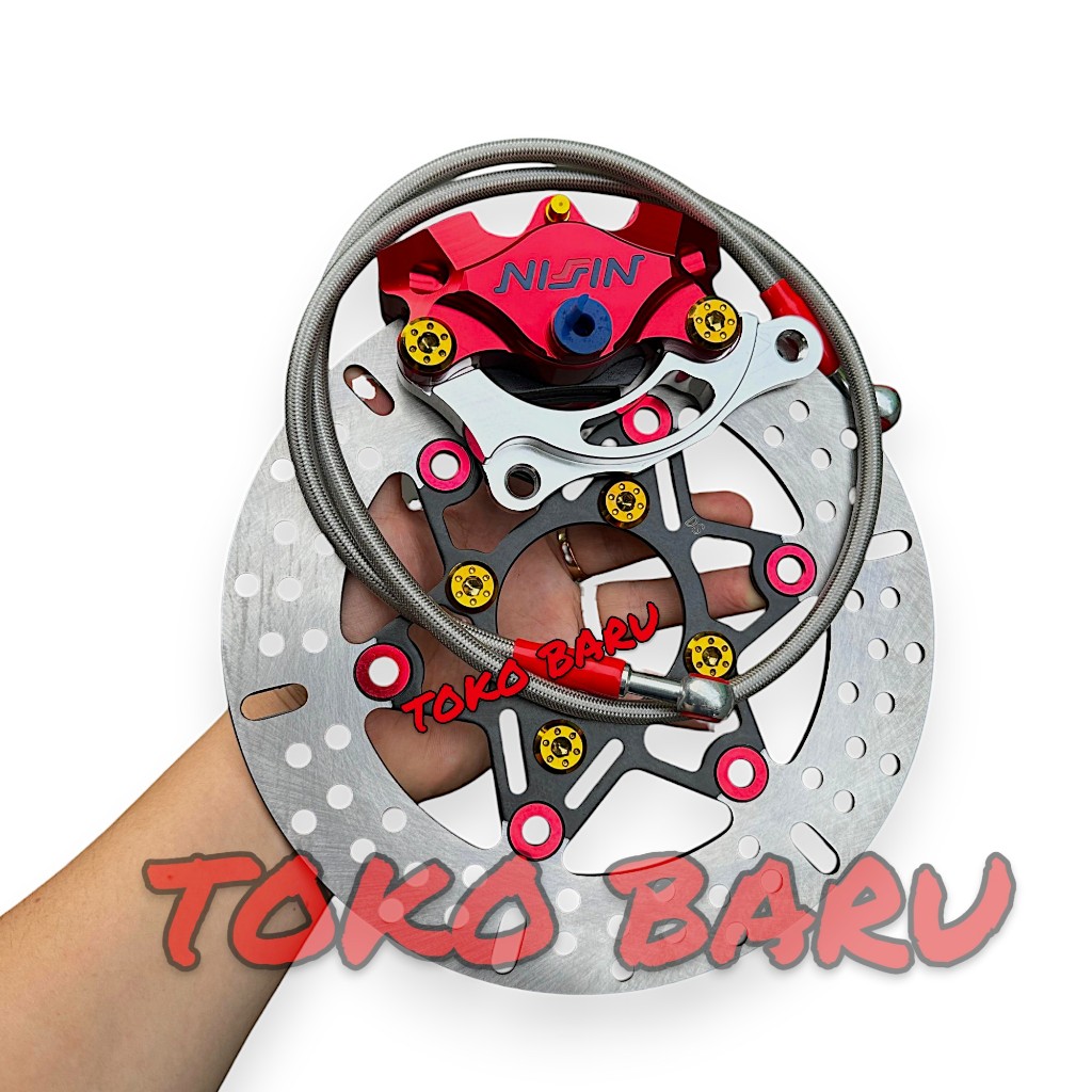 1Paket Kaliper 2Piston + Piringan Disc 220Mm + Selang Rem 90Cm + Baut Disc + Breket 220Mm Beat Vario Scoopy Mio Smile Fi