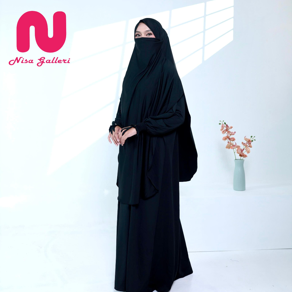 NISA GALLERI - Gamis Syari Abaya Set Gamis Kajian Haji dan Umroh Set French Khimar 2in1 Bahan Jersey Premium