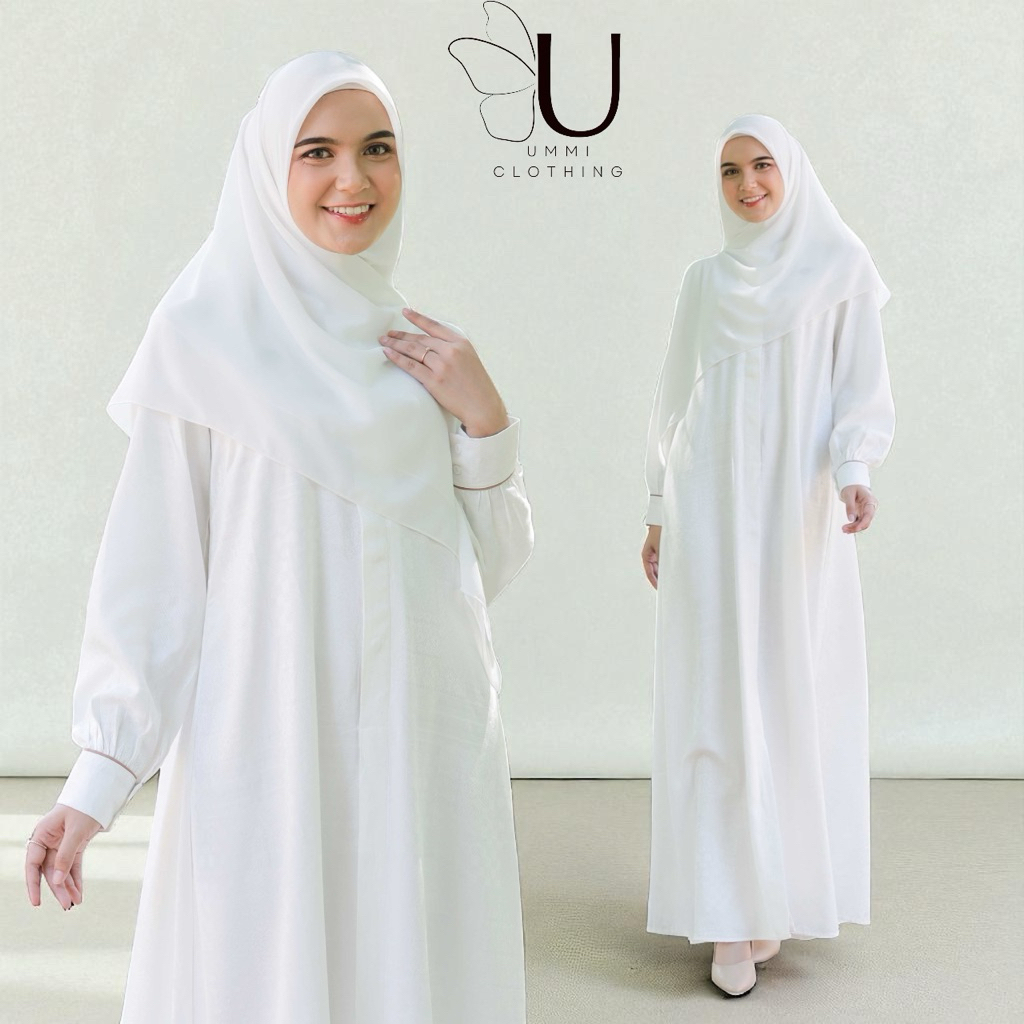Ummiclothing - Gamis Viscose Jacguard | Dress Putih Syari Muslimah Umroh Haji BW Gamis pengajian