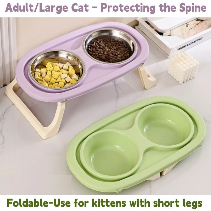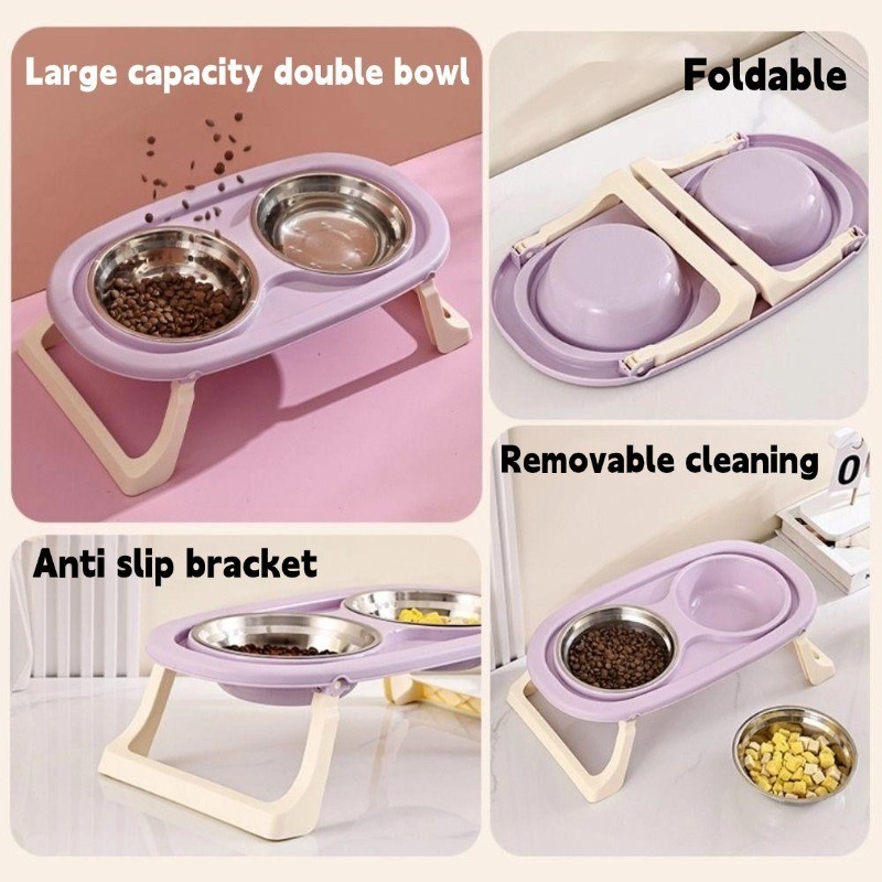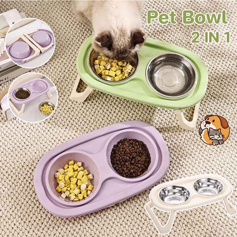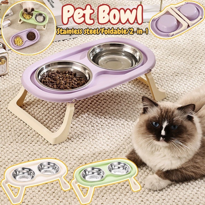 New 2 in 1 Mangkuk Kucing Lipat Mangkuk Kucing Stainless Mangkuk Ganda Hewan Peliharaan Mangkuk Ganda Minum Dan Mem