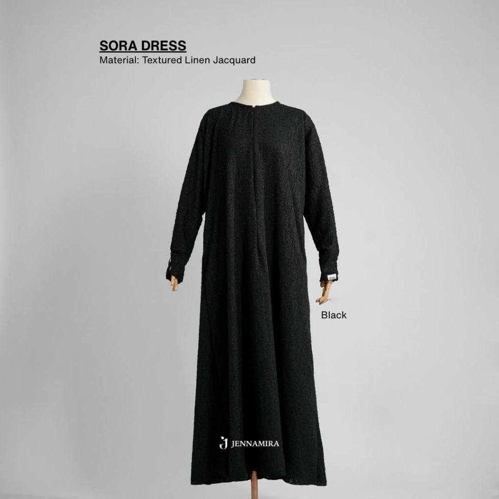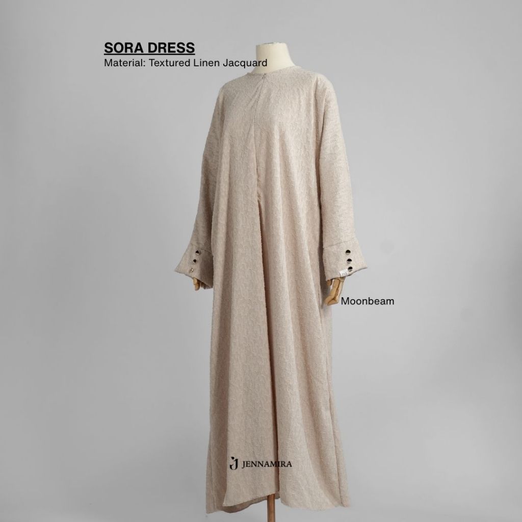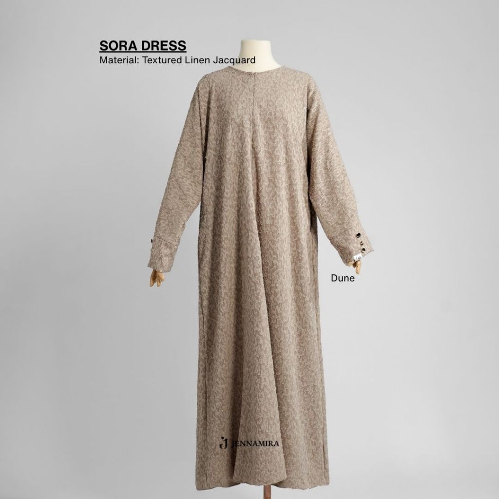 Jennamira | Sora Dress Abaya Bahan Textured Linen Jacquard Busui Wudu Friendly