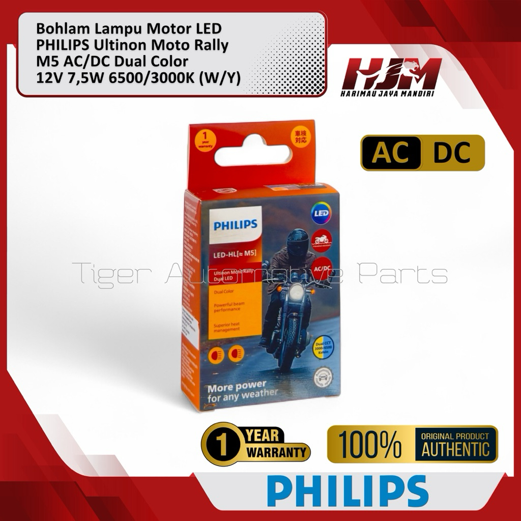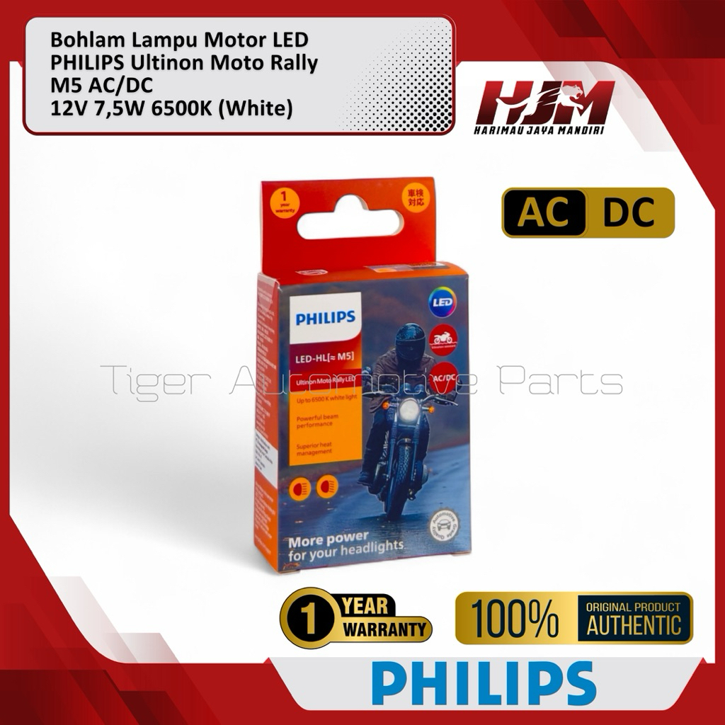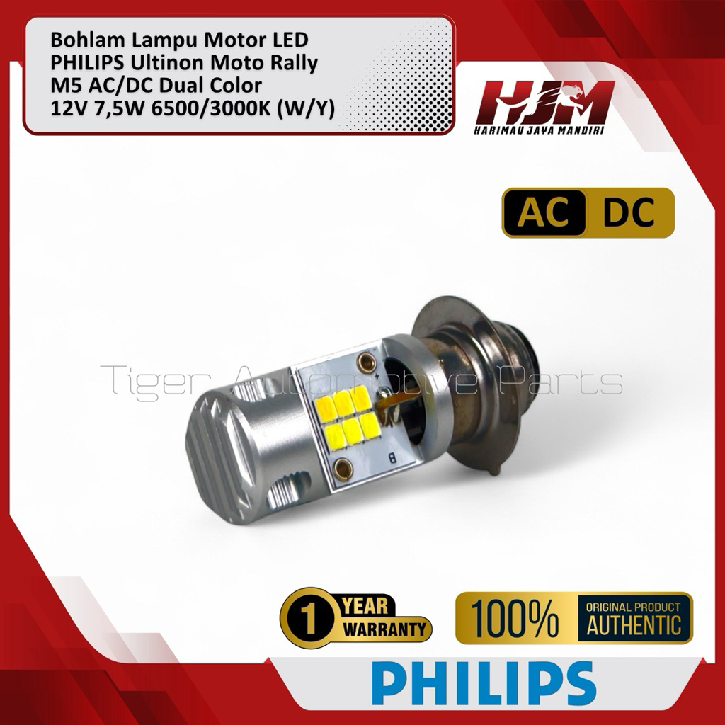 Bohlam Lampu LED Motor PHILIPS M5 T19 AC/DC 12V 7.5W Ultinon Moto Rally Kaki 1 Original