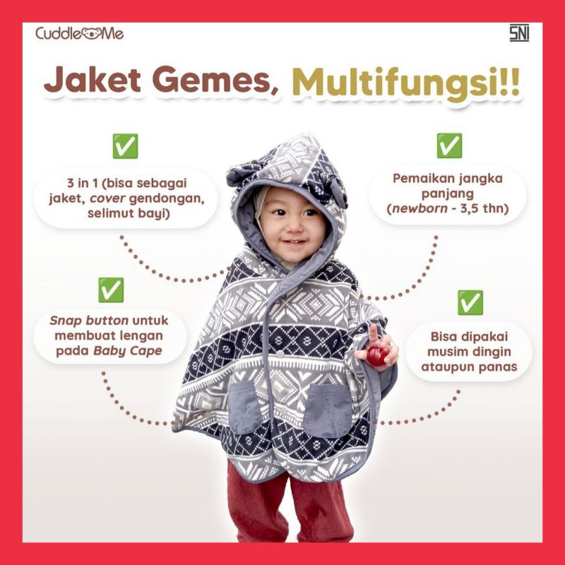 Jaket Bayi CUDDLE ME Baby Cape Mantel Bolak Balik Selimut Topi Bulu Hangat untuk Cuaca Dingin Panas