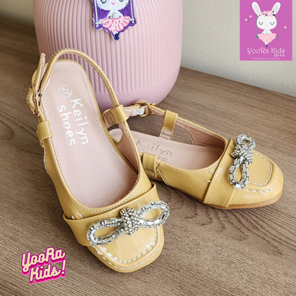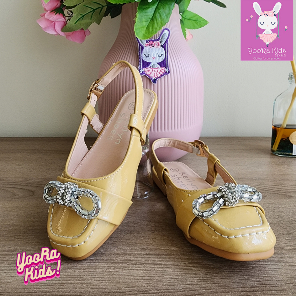Yoorakids Sepatu Pita Sandal Gadis Lucu Flat Glossy Anak Perempuan kulit Cewek Sling back