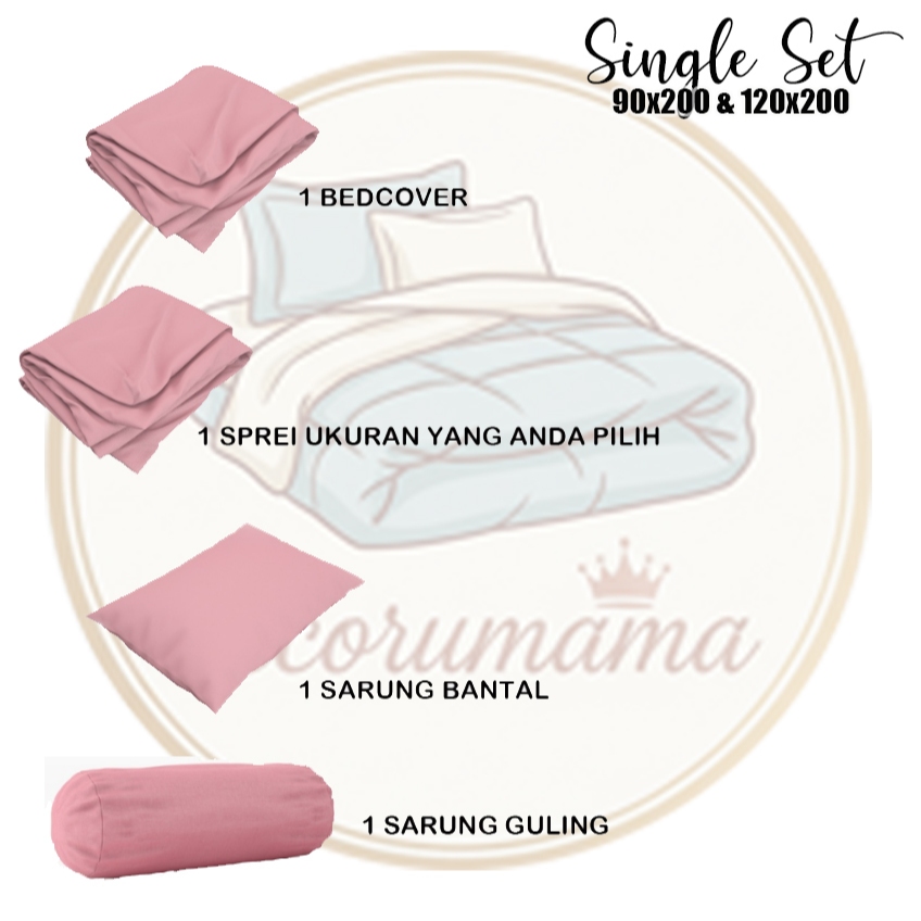 BEDCOVER SET POLOS/Bedcover+Sprei Motif Polos Satu Warna