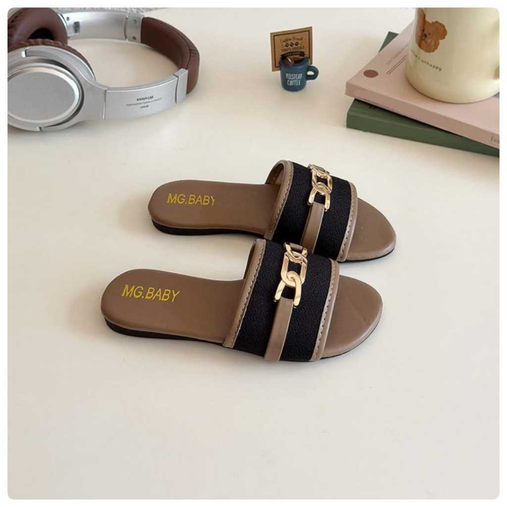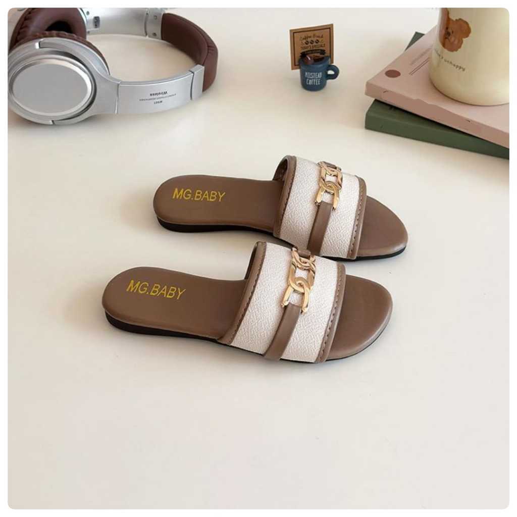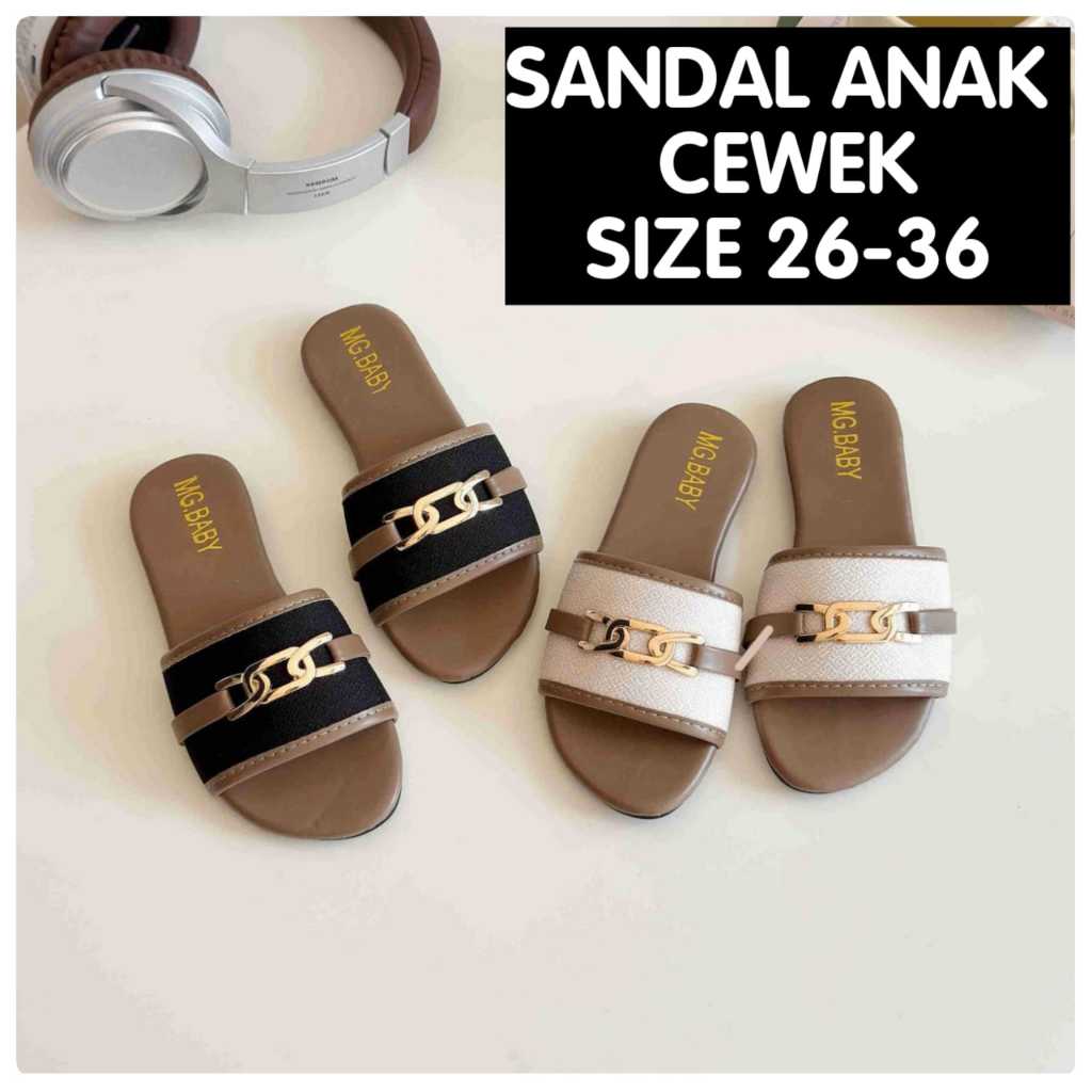 (LOLI-JKT) SD V6637 SANDAL FLAT ANAK CEWEK SLIP ON VARIASI RANTAI DEPAN SIZE 26-36