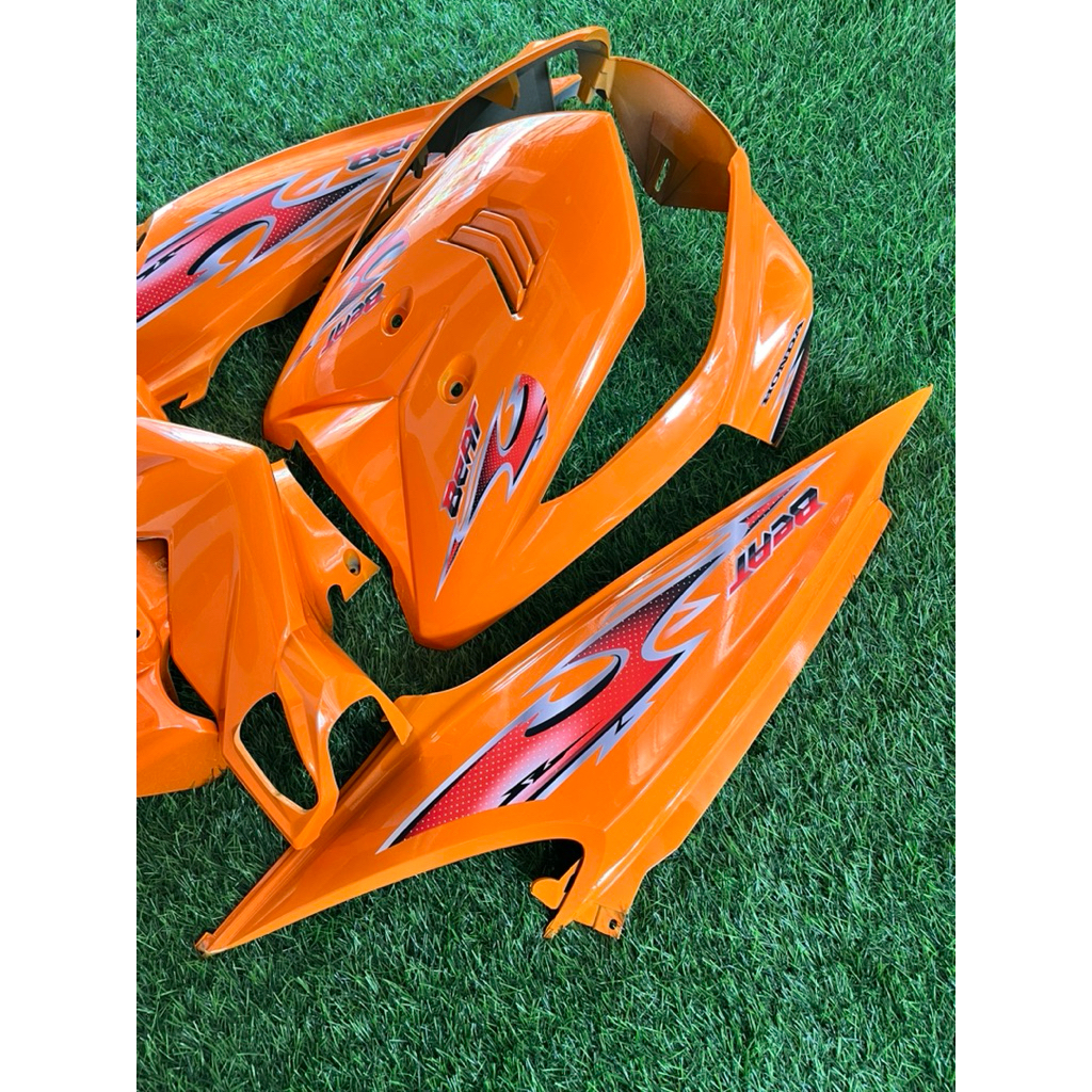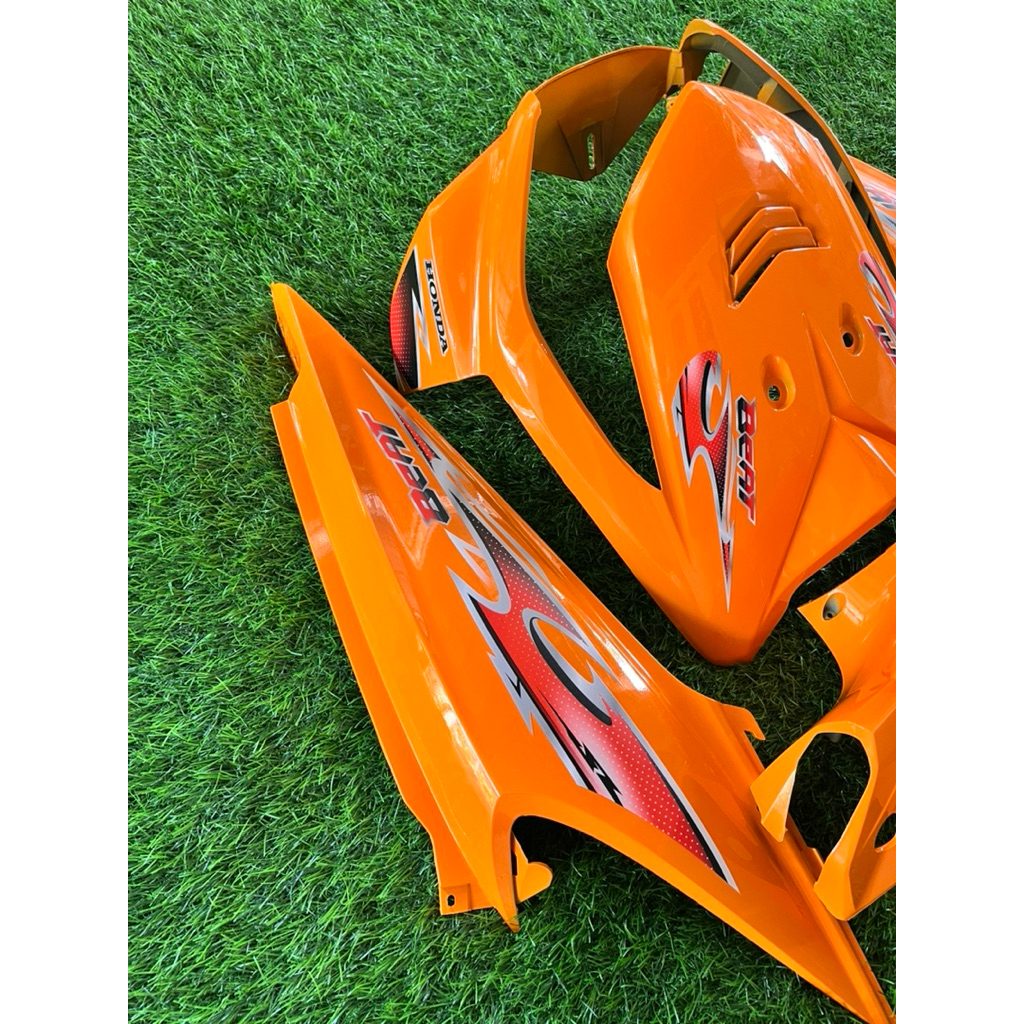 Cover Full Body Halus Honda Beat Karbu Tahun 2008-2012 Warna Oren Plus Striping Transparan