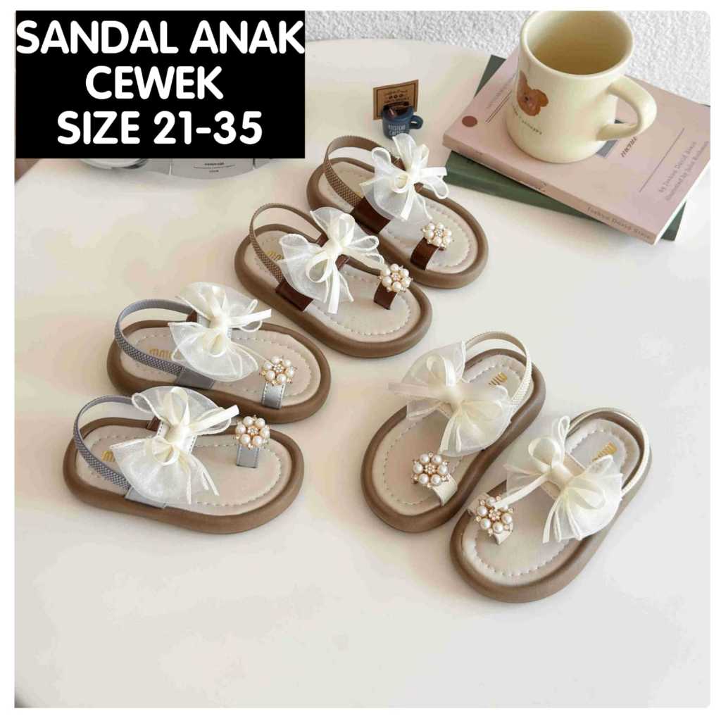 (LOLI-JKT) SD- V7767 SANDAL FLAT ANAK MUTIARA BUNGA DEPAN PITA TIMBUL 3 WARNA SIZE 21-35